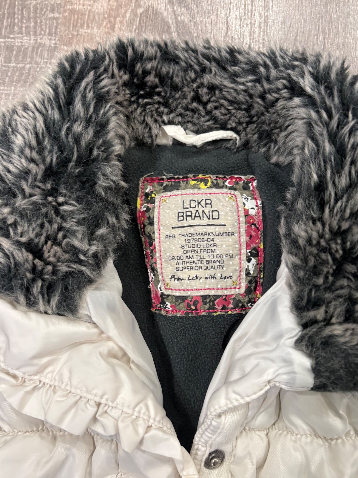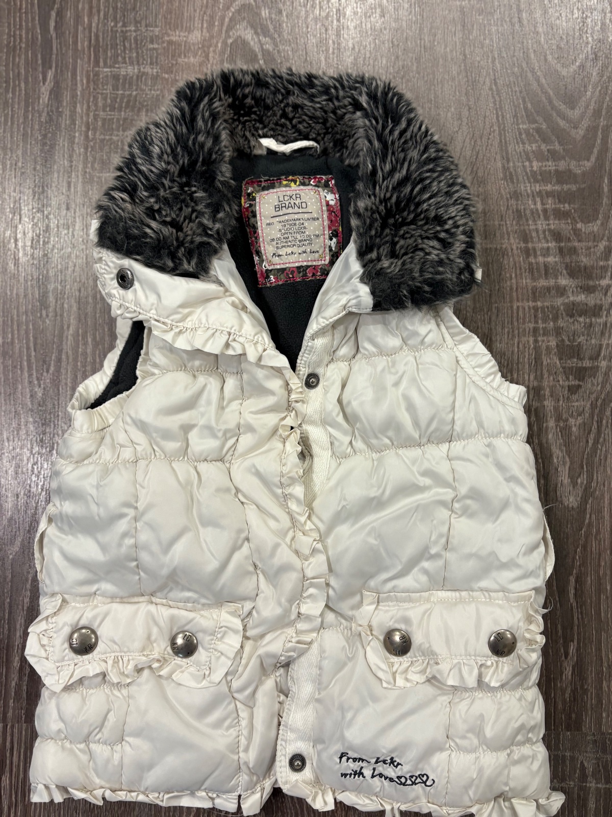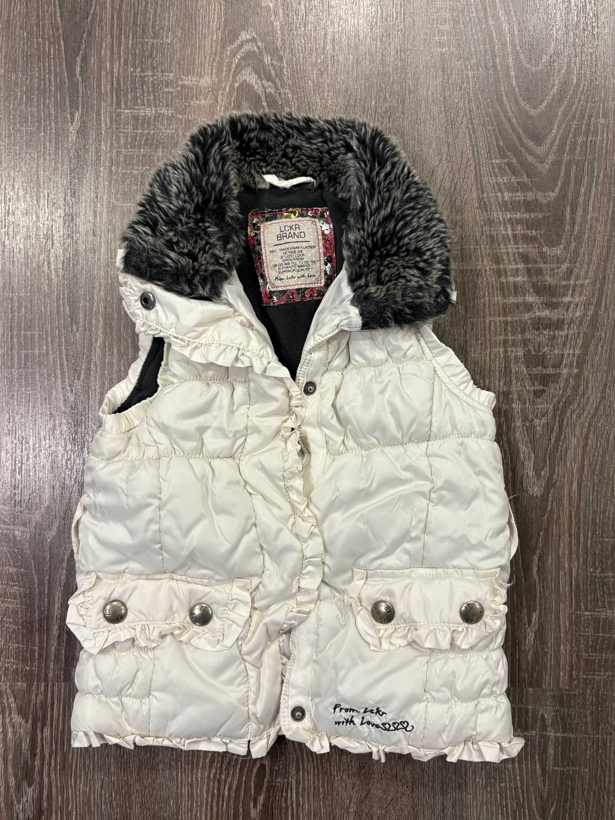 3.LCKR frajerska dievčenska vesta s kožušinkou, teplučka na prechodne počasie, vo velkosti 110/116, dlžka je 44cm a širka v podpazuší je cca 32x2cm..velmi pekna