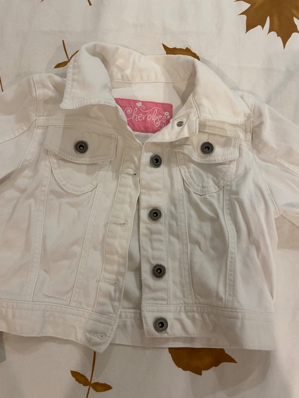 Prechodná bunda Cherokee, na 10-11 rokov. Celková dĺžka je 54 cm, šírka pod ramenami je 43 cm, dĺžka rukáva od krku je 62 cm. Na fotke je nevyžehlená. Bunda je vo výbornom stave.