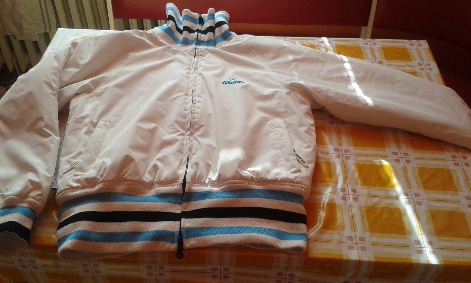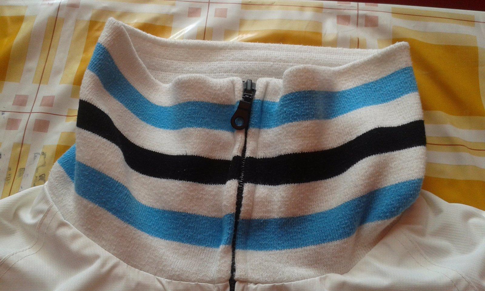 Ponúkam na predaj málo nosenú vetrovku. Rozmery: šírka medzi pazuchami 2 x 56 cm. Rukáv od pazuchy po koniec 55 cm, od krku 76 cm, celková dĺžka 65 cm. Na rukáve je čierna bodka od etikety, nedala sa vyprať.