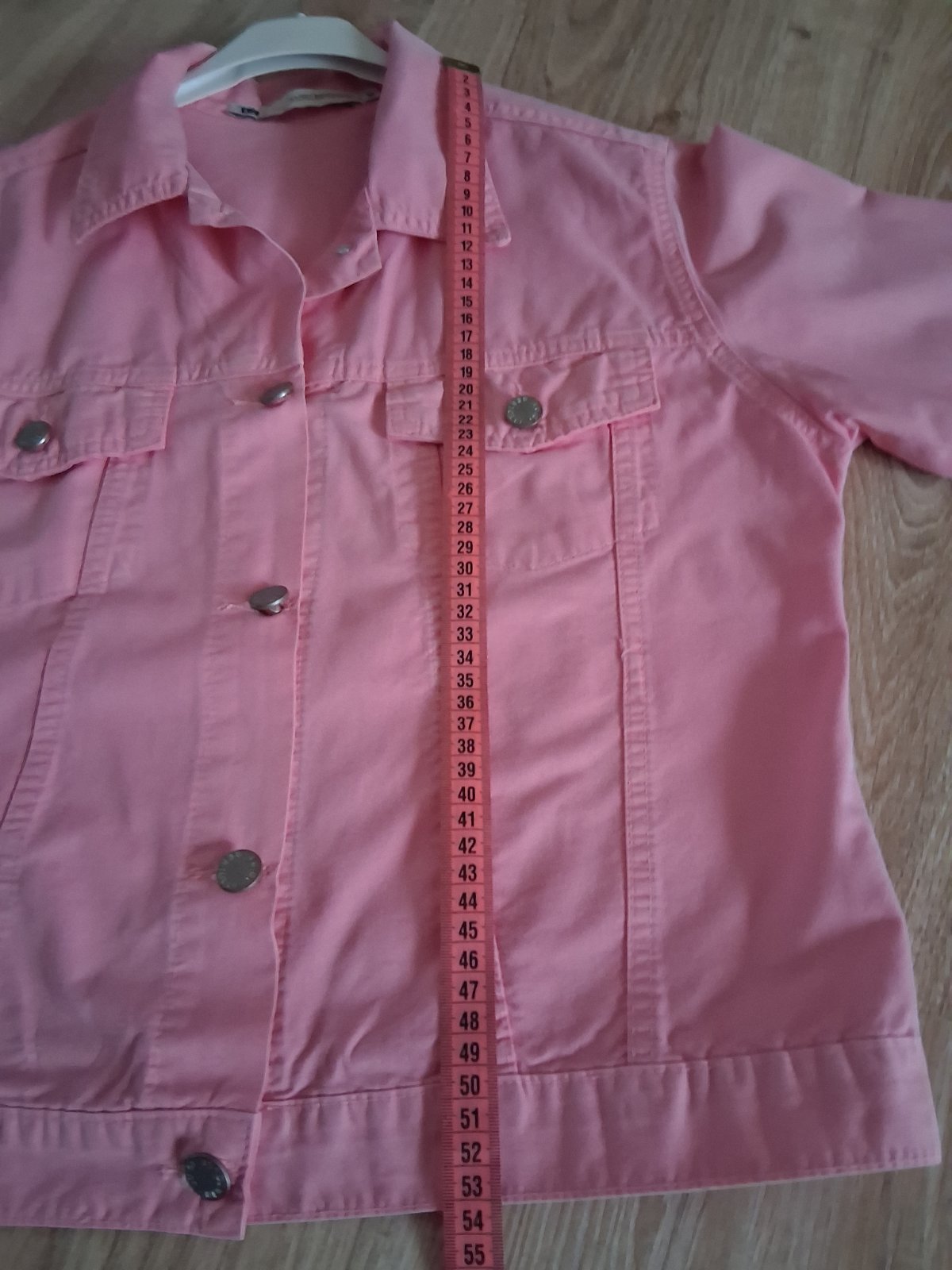 Farba skôr staroružová, veľkosť sedí ako voľnejšie M, ja mám 170cm, foto na postave. Bundička je príjemná, vhodná na jar/jeseň. Kapucňa sa nedá odopnúť. Jemne tvaruje v páse.