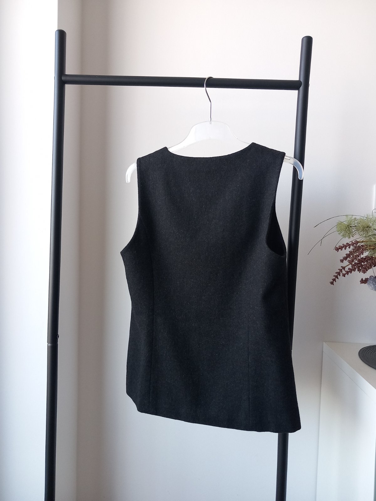 Pohodlná tmavosivá vesta.