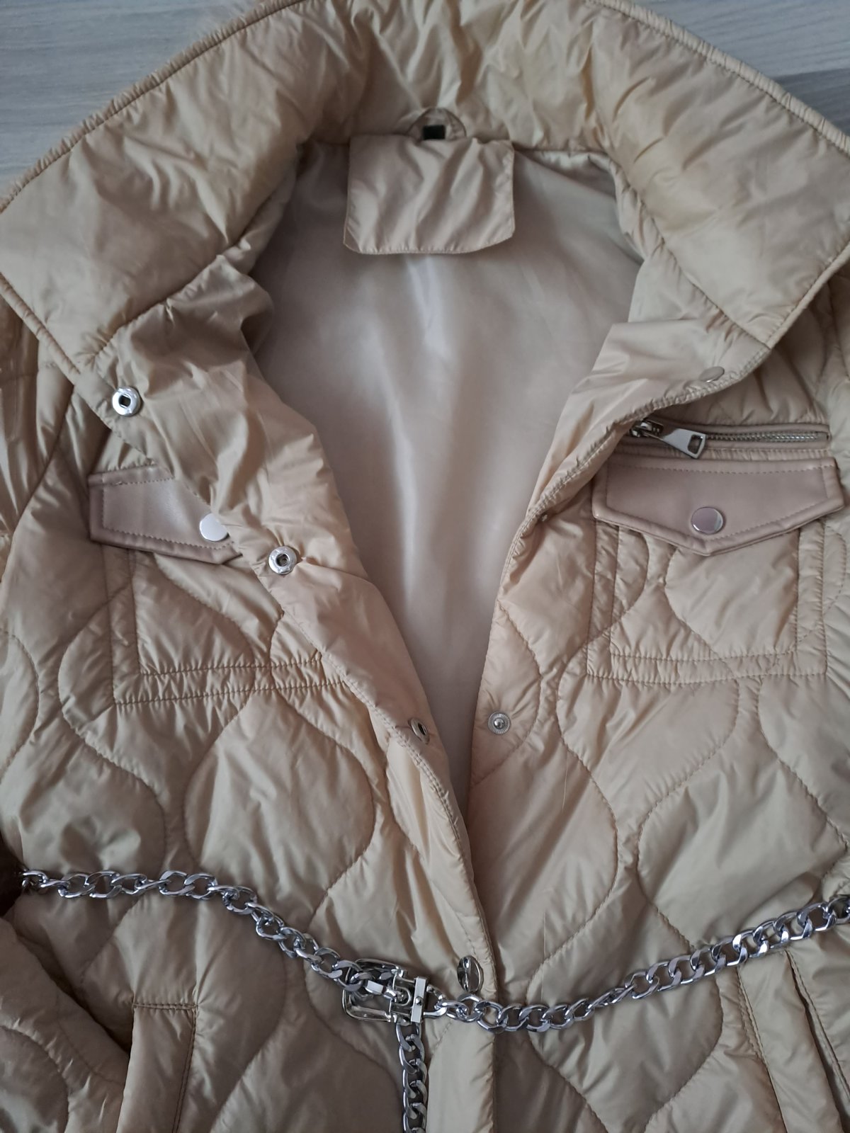 Krásna prešívaná bundička s opaskom. V TOP stave, 2x oblečená. Pekne sedí na postave. Je ľahučká, ale teplá (ideálna na jeseň).Veľ. L. Kupovaná v butiku za 65€.