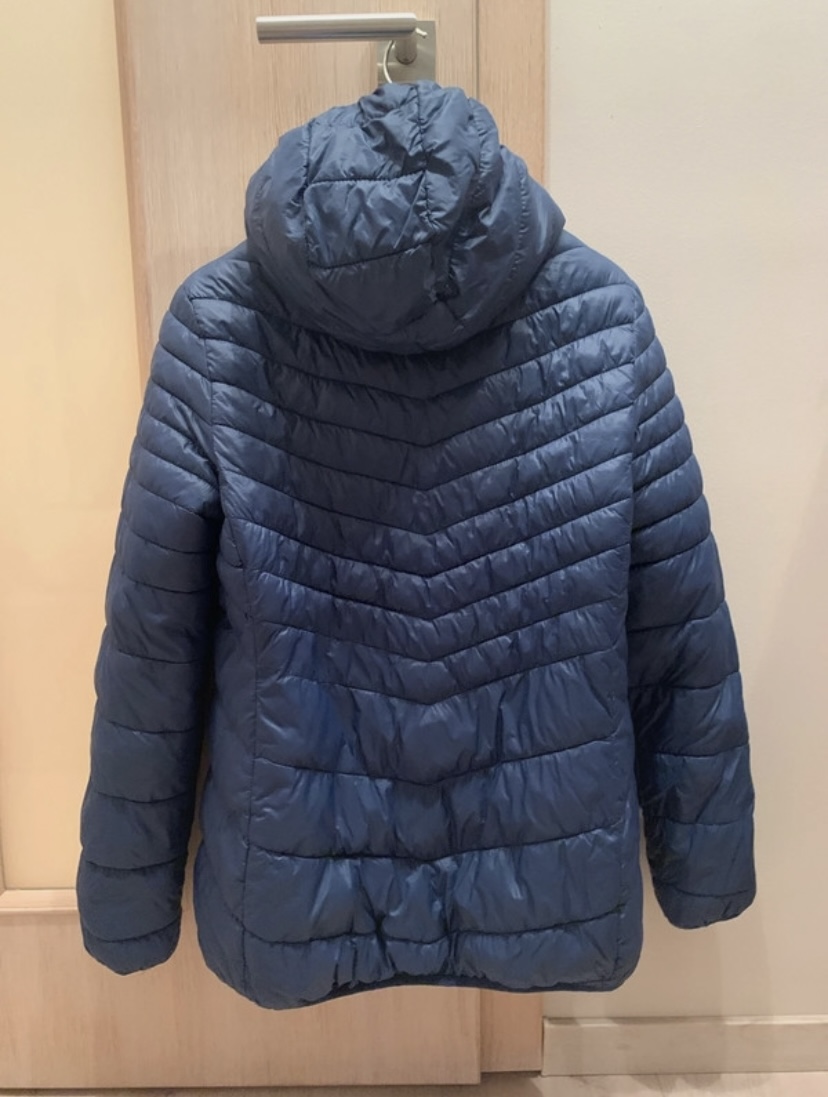 Velmi lahucka, paperova bunda, velmi malo nosena, absolutne bez poskodenia. Samozrejme original. Vyborny strih, volnejsie cez brucho. Rozmery zapnutej bundy: šírka cez prsia 57 cm, dĺžka 70 cm, ruk...