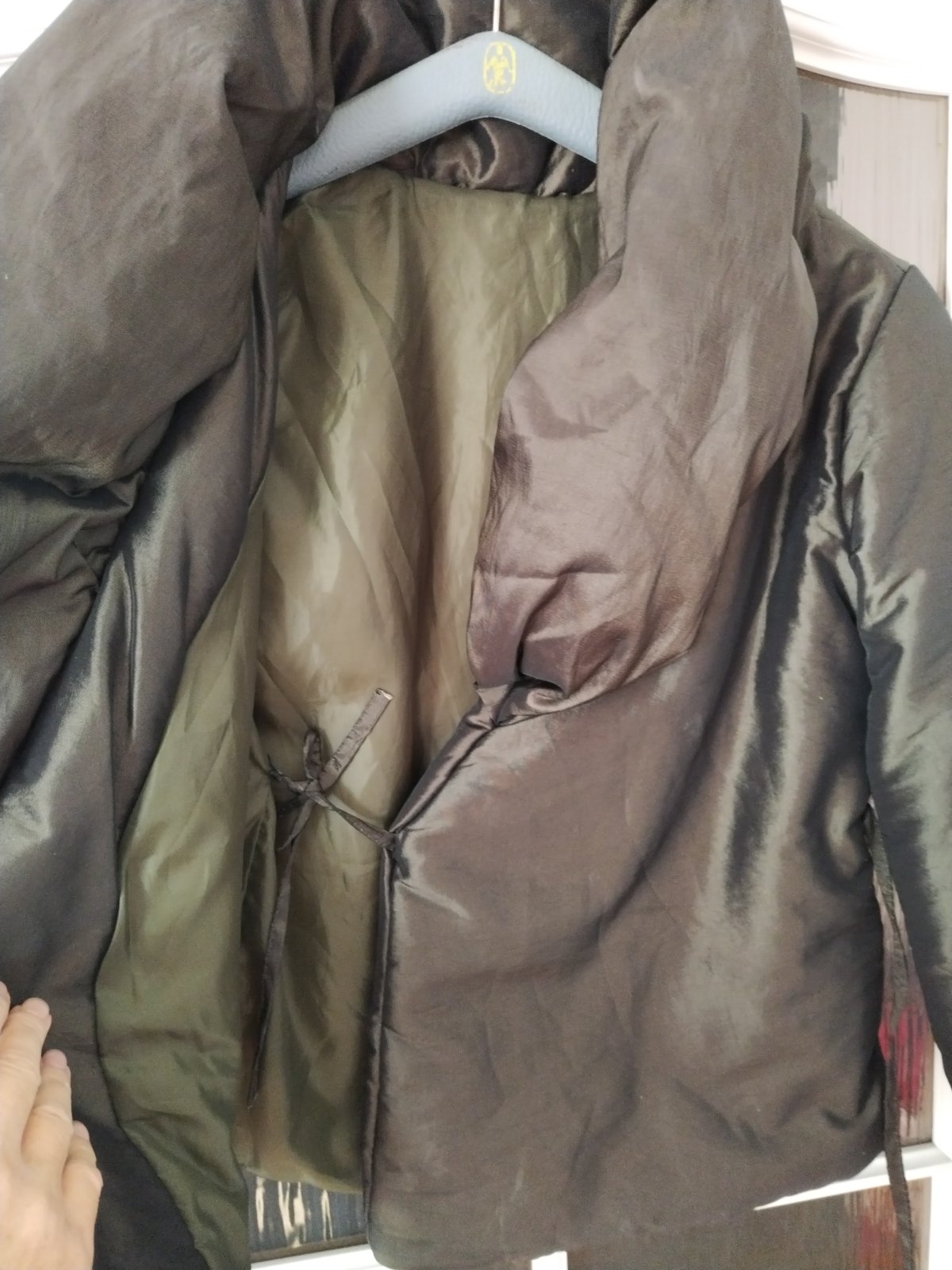 Krásna luxusná prešívaná bunda (jeseň/zima). Lesklý vzhľad, hnedá farba). Krajina pôvodu: Taliansko Veľkosť 42 (sedí skôr na S/M, figurína má veľkosť 36/38). Dĺžka 90cm, ob od prsia 96cm, pás 86cm,...