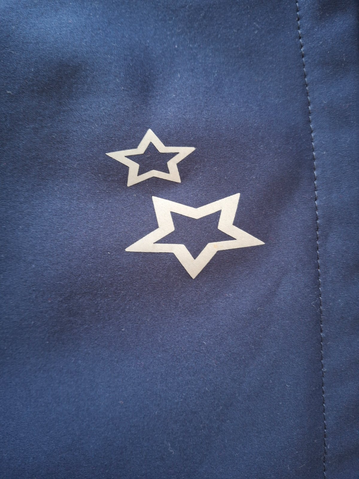 Rozmery : rukávy 59cm, zips 59cm, plecia 38 cm, šírka pod pazuchami 44cm, od pazuch dole 41cm, predĺžený zadný diel 63cm, vzadu dve reflexné hviezdy. Na ľavom ramene plastová aplikácia