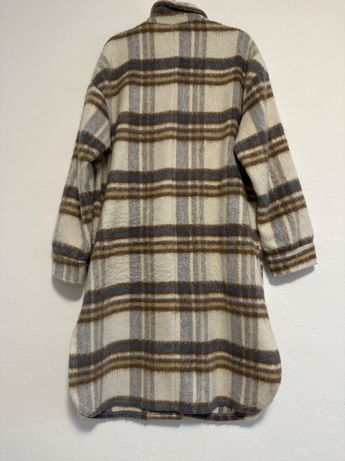 Bledý jarný kabát Amisu veľkosti L. Chýba jeden gombík. Nie je až tak viditeľný. Vrchné gombíky sa dajú nahradiť za iné, prípadne vymeniť všetky.