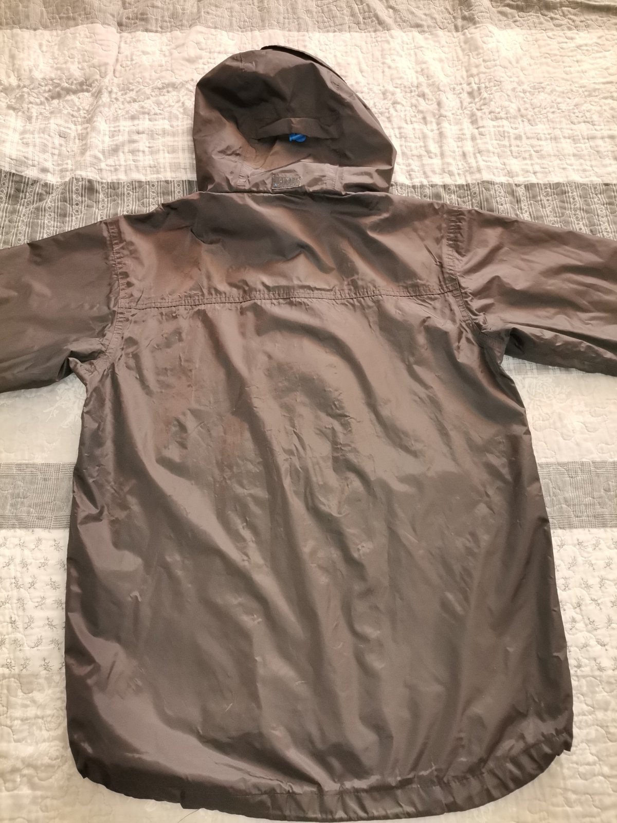Na pravom ramene má ošúchané od vaku. Inak vetrovka je stále krásna. Farba je skôr antracitová ako čierna.