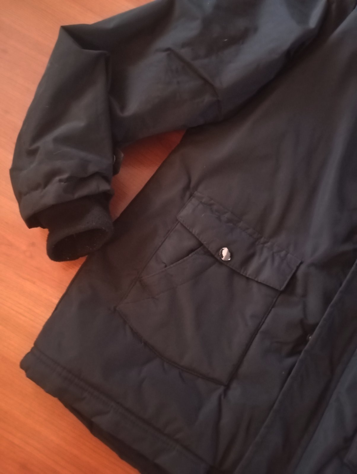 Pekná čierna bunda, nosená, zachovalá, farba sýta čierna, na ramene malý kaz asi 2mm