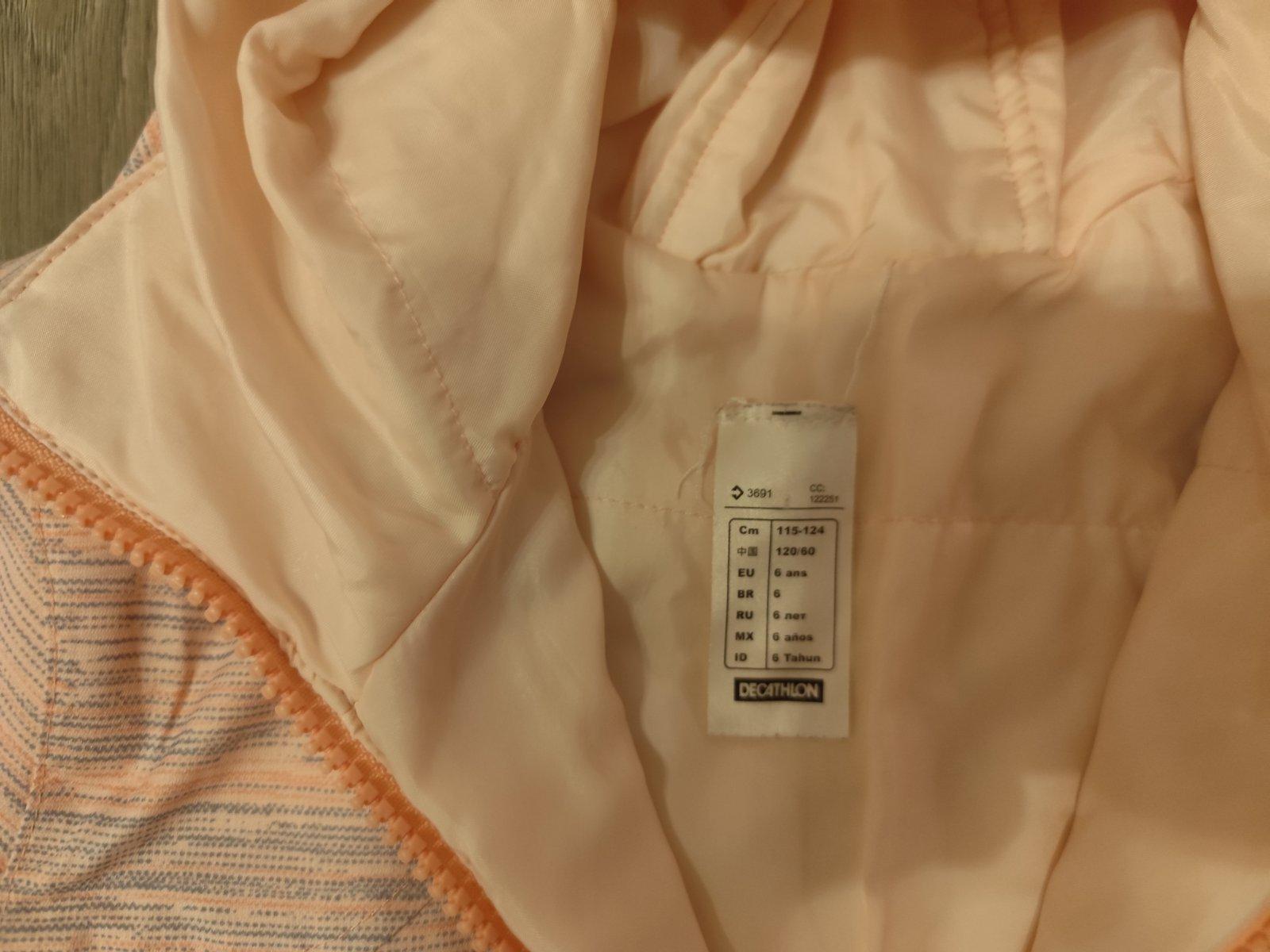 Perfektná obojstranná bunda z Decathlonu. Veľkosť uvedena na 6 rokov, čiže cca 122, ale dcérka ju nosila ešte ako 10 ročná, keď nosila už 134ku Veľmi pekný nosený stav