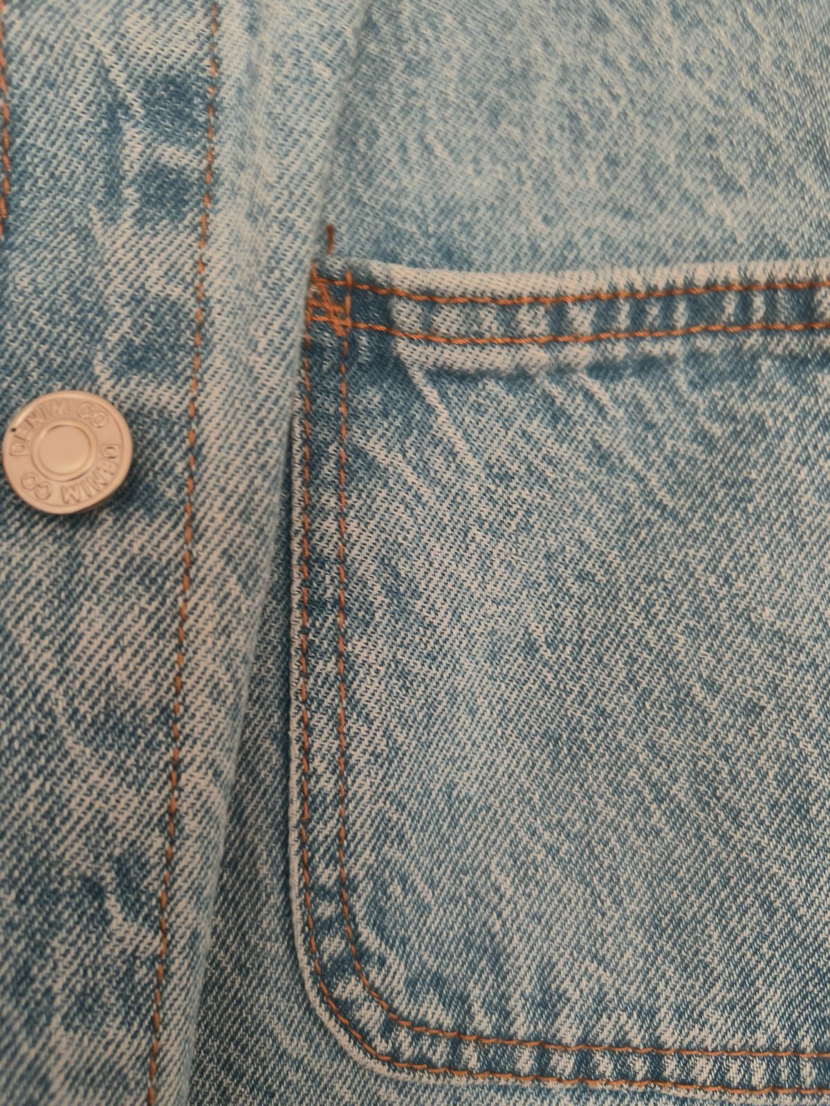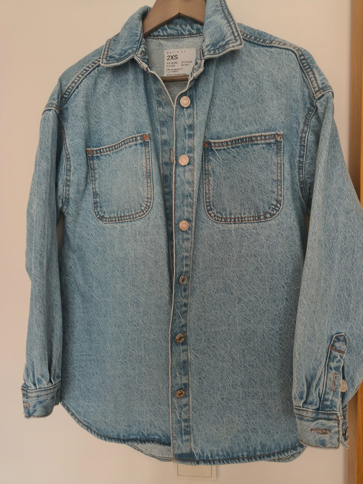 Predám džínsovú košeľovú bundu z Primark Care vo veľmi dobrom stave. Veľkosť na etikete je 32/34 EUR. Podľa môjho názoru je väčšia ako uvedené miery. Košeľa má veľmi peknú farbu a strih, so zaoblenými vreckami a bokmi. Je vyrobená z hrubej, slušnej 100% bavlny.