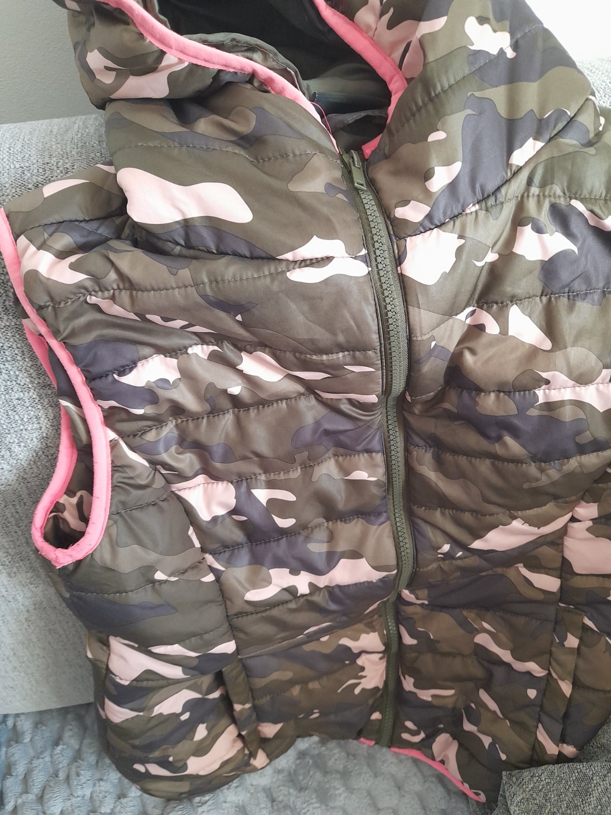 Myslím, že asi ju dcéra ani nenosila. Veľkost 40. Zapínanie na zips, tenká, ľahká, vyplnená mierne vatelínom.