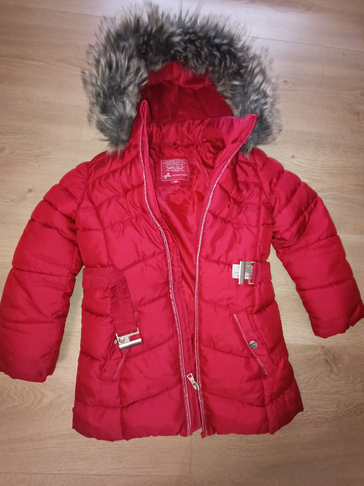 Krásna bunda . Pár krát oblečená. Veľkosť 134, ale sadne 128 Kožušina sa dá odopnut