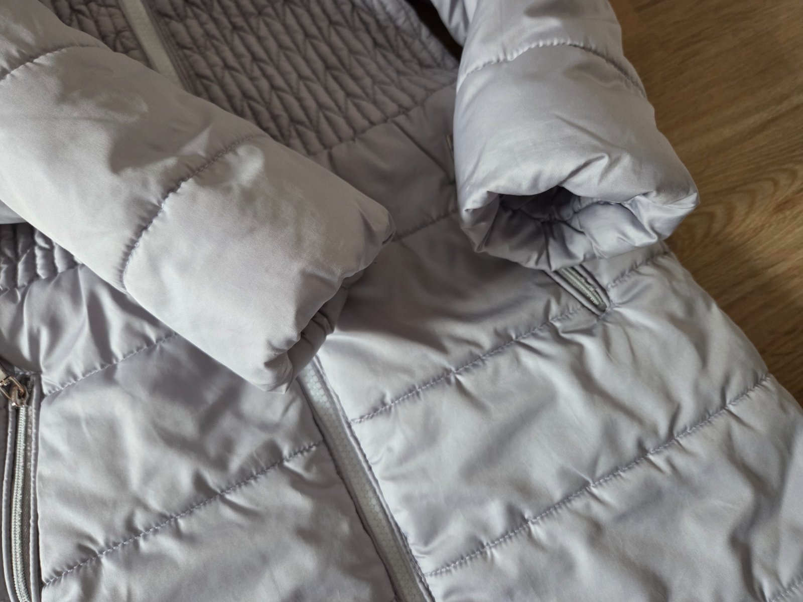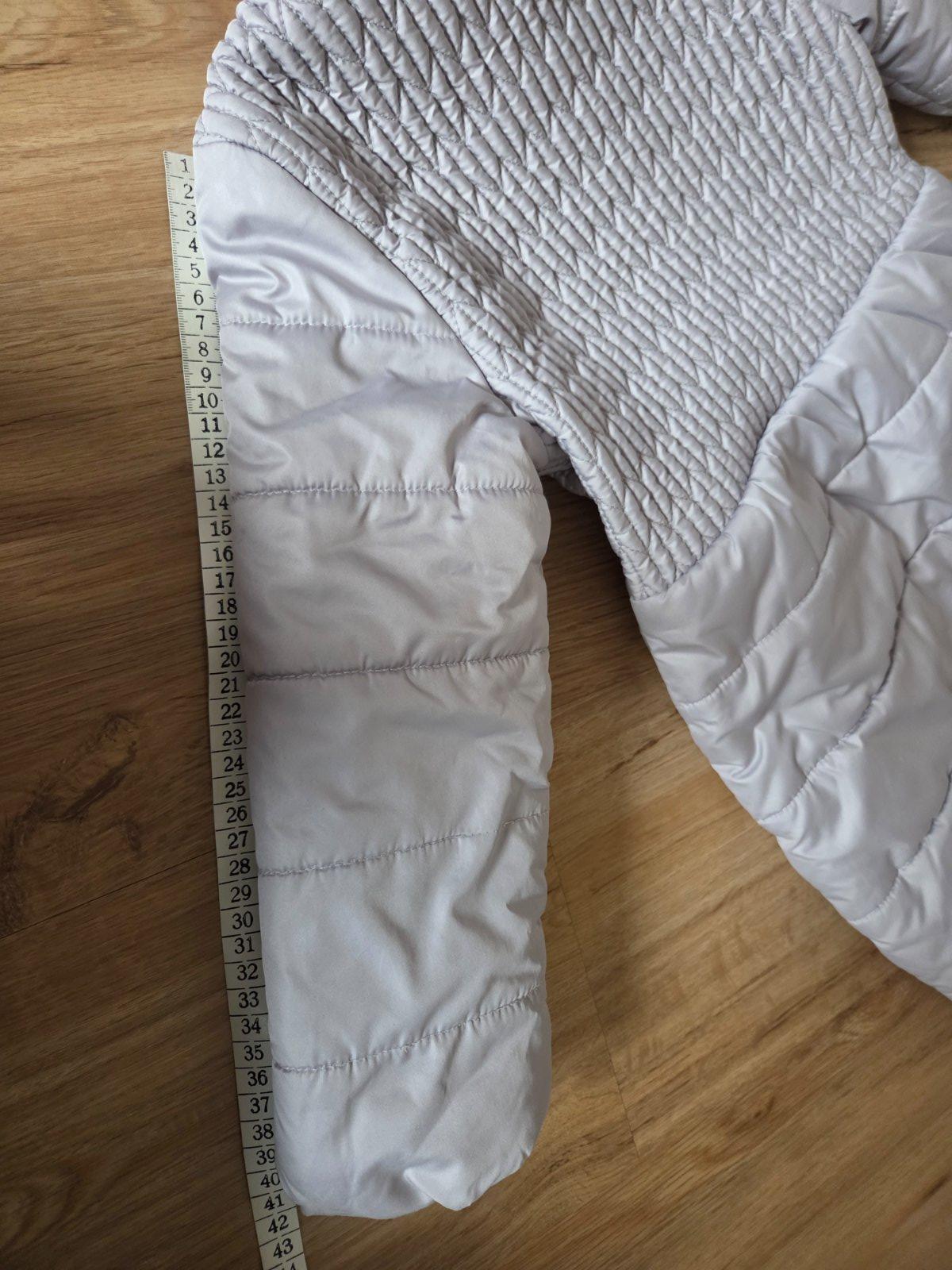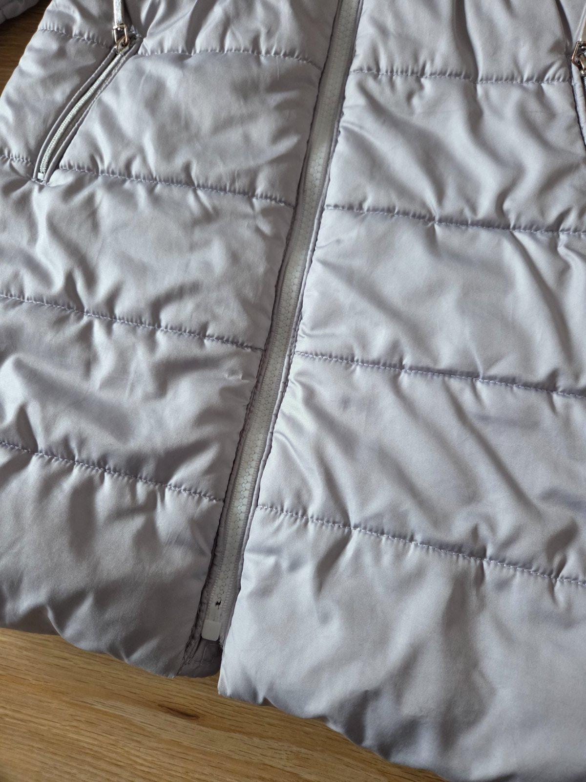 Nasa najoblubenejsia bunda. Teplucka. Nosili sme aj ako velkost 116. Cena symbolicka, kedze ma 1 zubok na zipse otrhnuty,zatial zips funguje dobre. Ale casom ho bude treba vymenit. A vedla vrecka je slaba ciarka, neviem ci to je ako sa susila..vidno len pri detailnom pohlade zblizka.