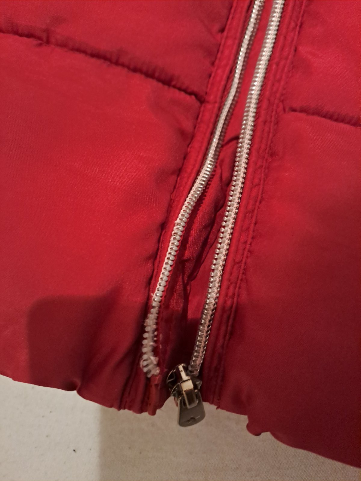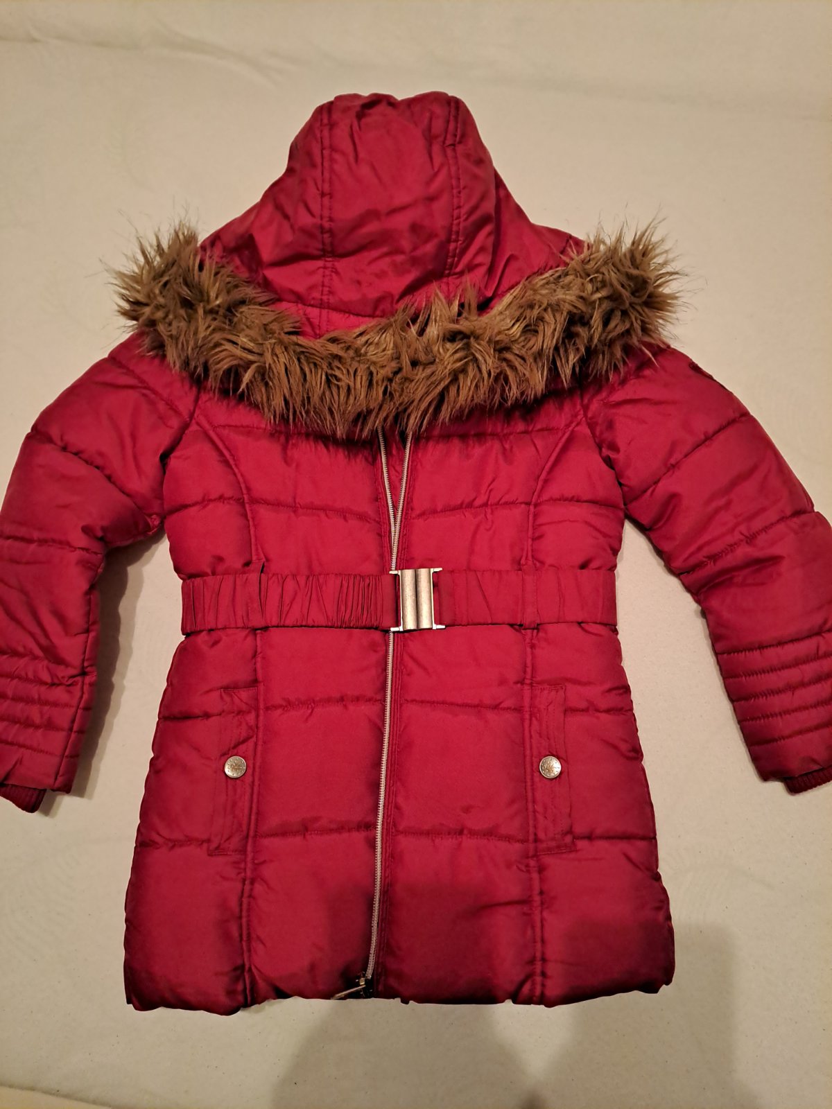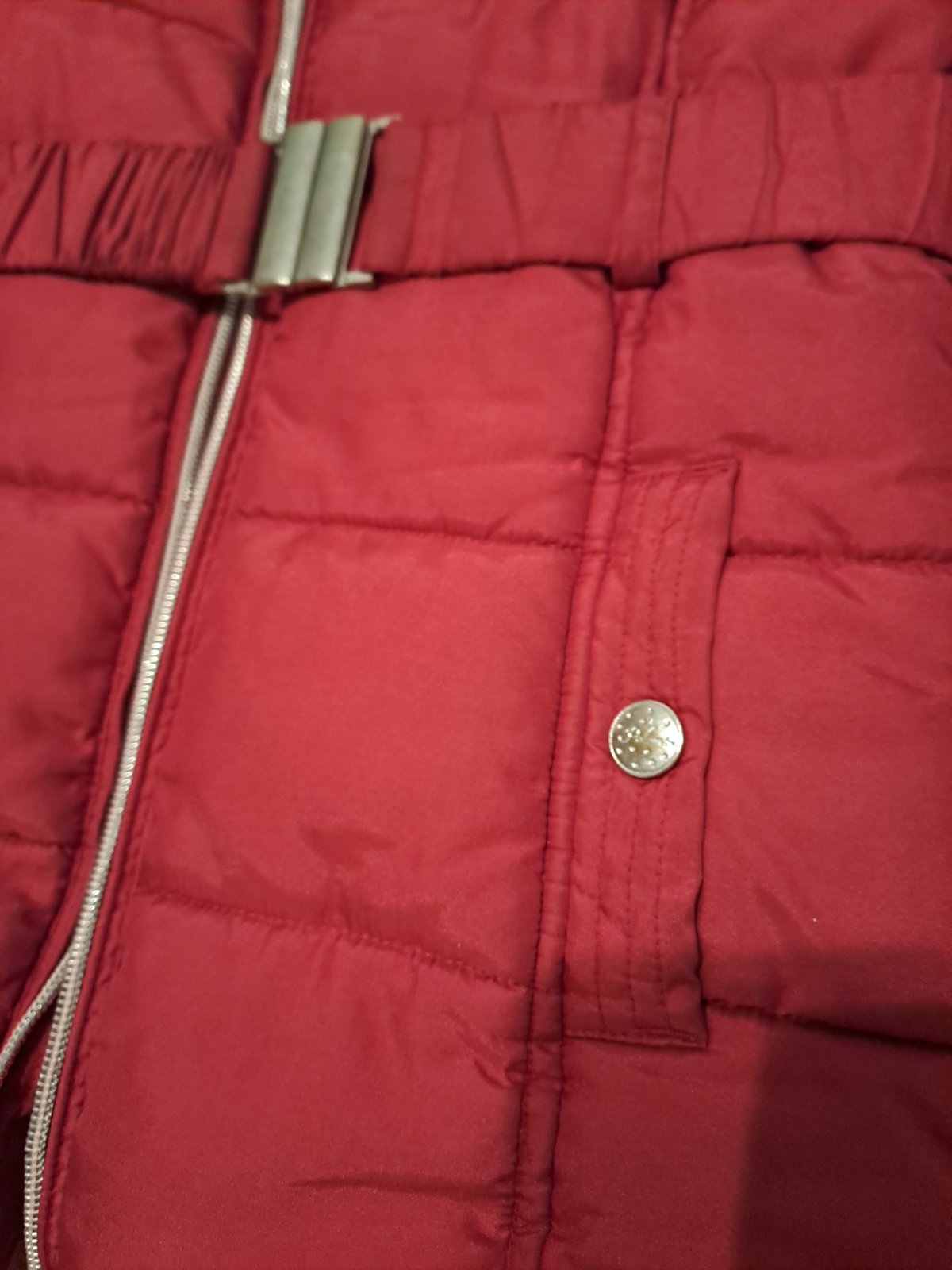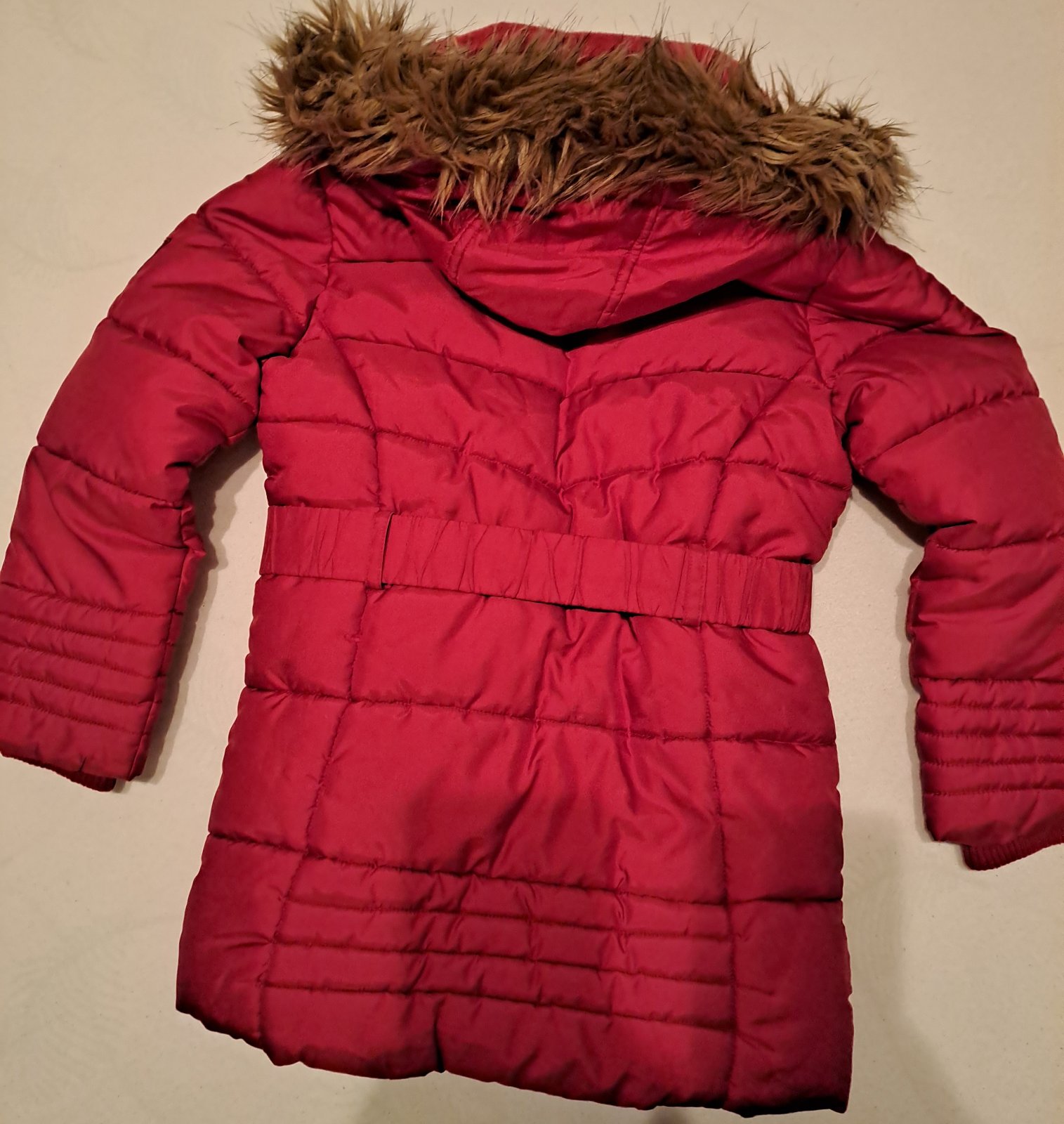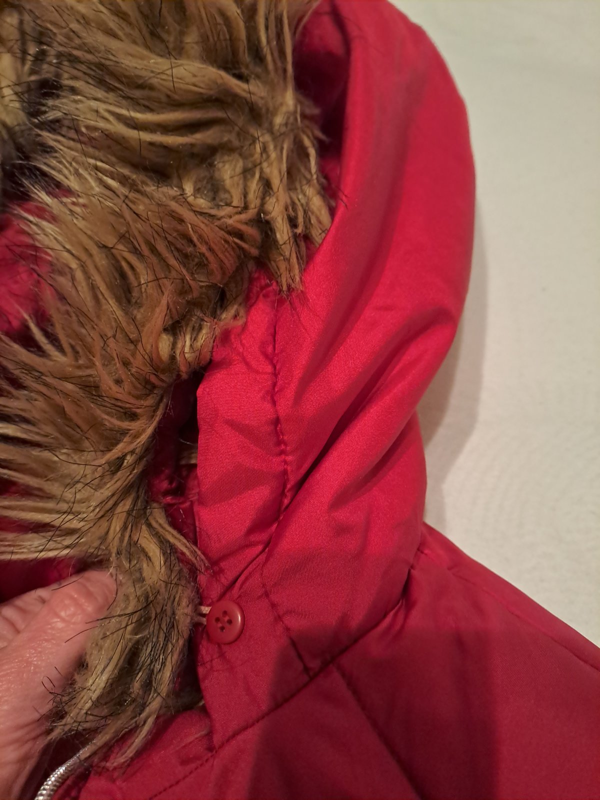 Krásna bunda pod zadok, kožušina aj opasok sa dajú dat dole. Ma pokazený zips, nejde mi ho zavrieť, ale šikovná mamina si poradí. Inak je v bezchybnom stave.