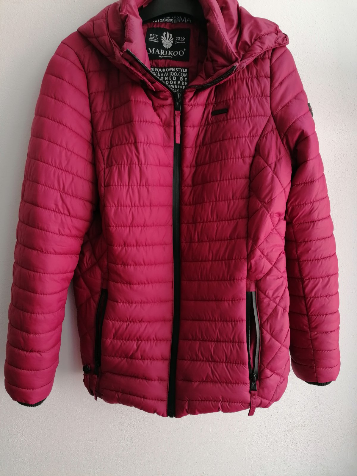 Krásna štýlová zimná bunda v sytej farbe. Len opratá, bohužiaľ mne malá. S patentami na rukávoch.