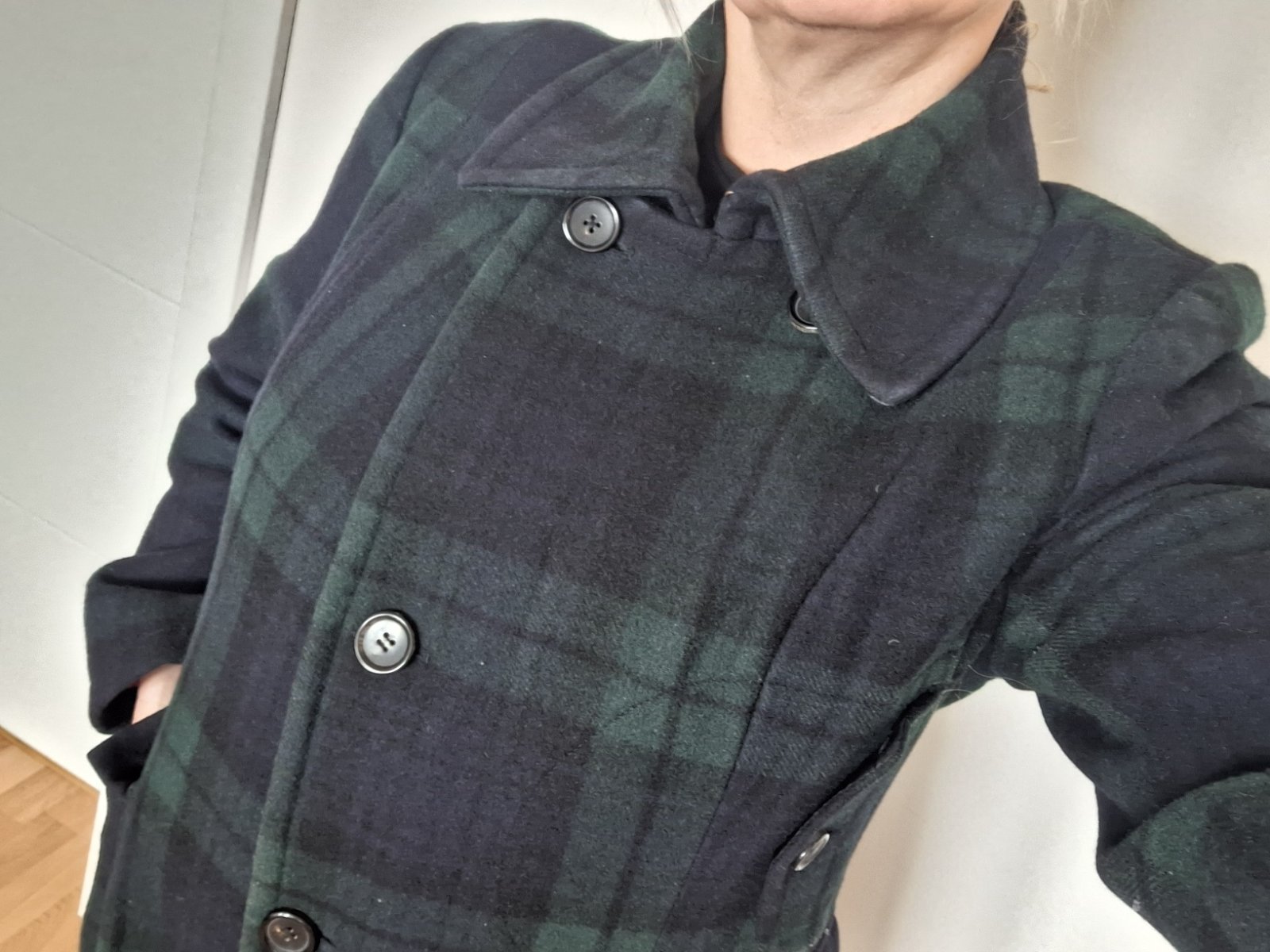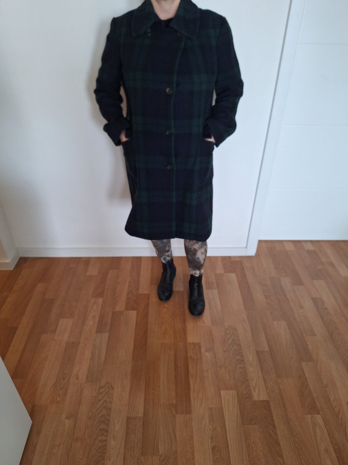nosený minimálne, jemne áčkový strih, poctivý hrubý kabát, v ktorom nebude zima, veľkosť sedí, žiadne žmolky, je ako nový