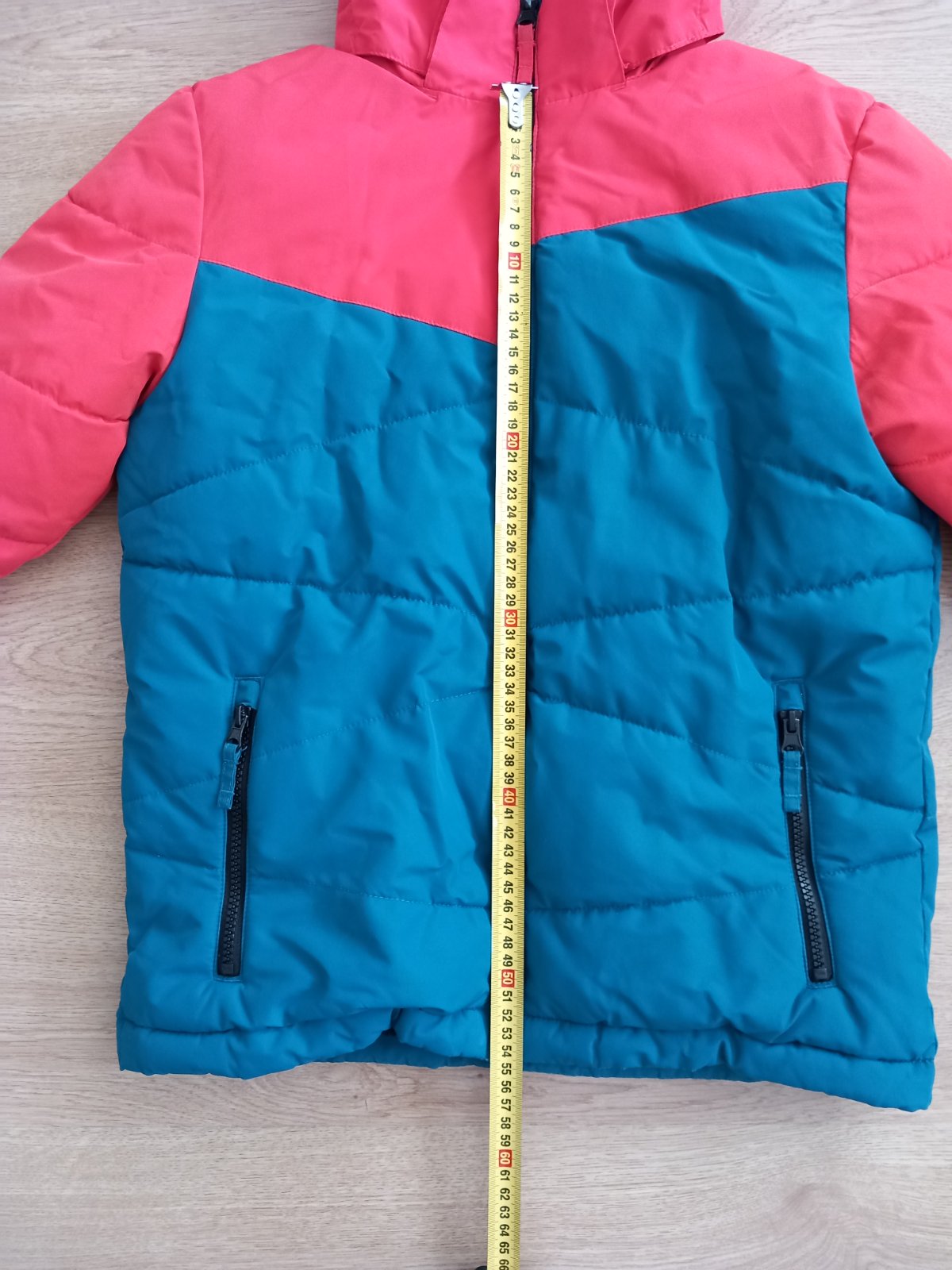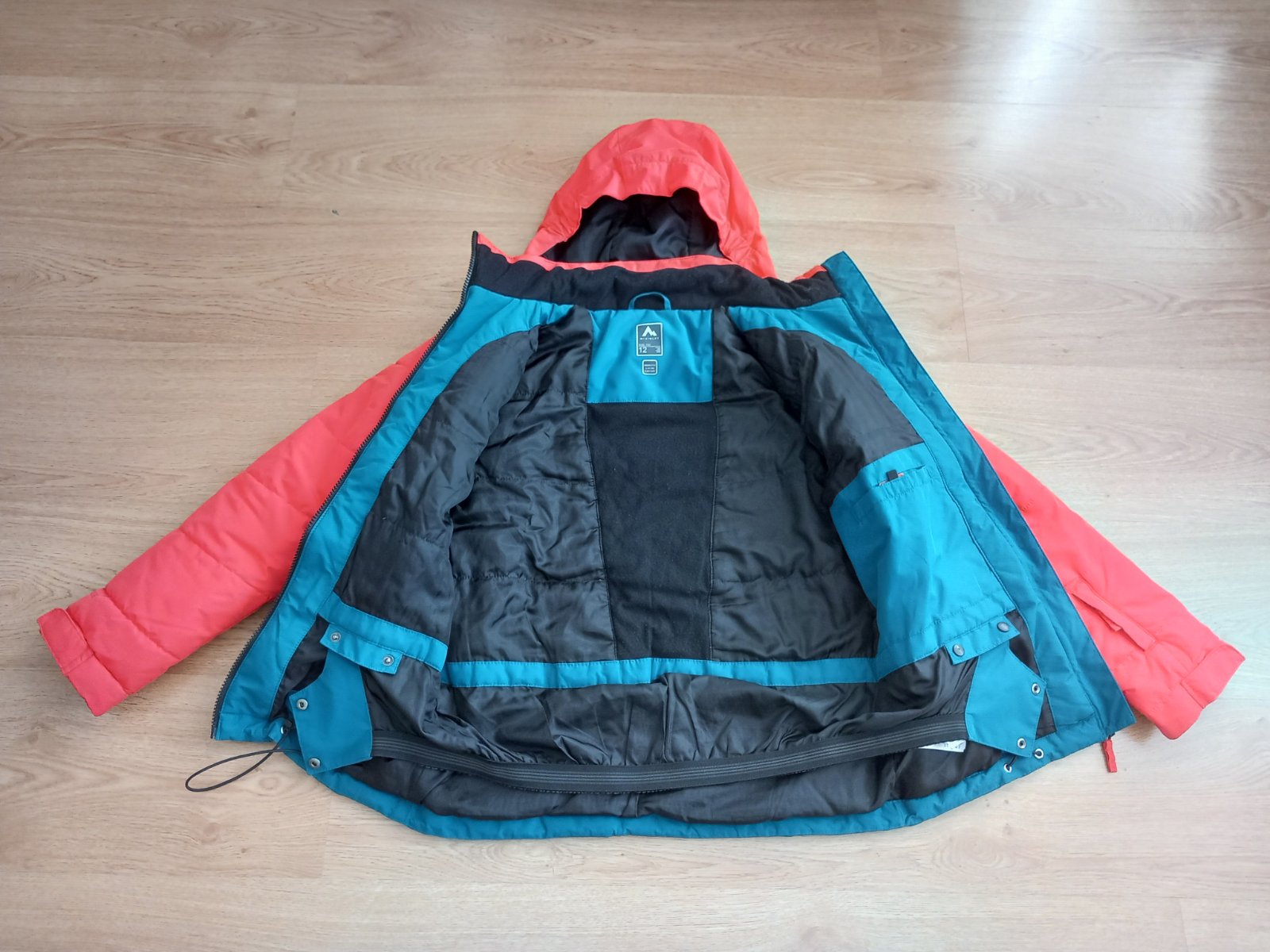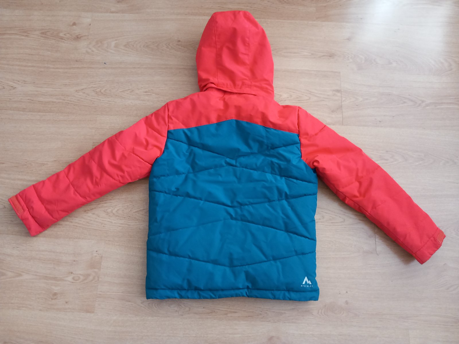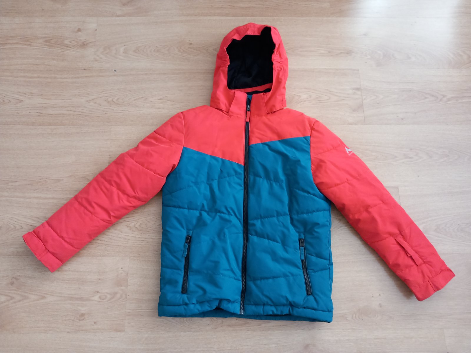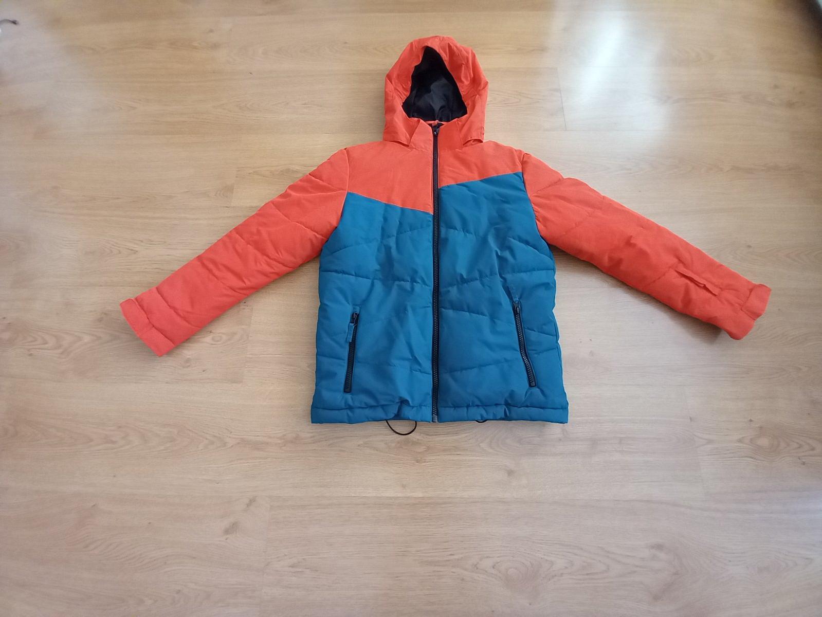 Predám zimnú lyžiarsku bundu veľkosť 152, resp. 12 rokov, značka McKINLEY. Bunda má snežný pás, odopínateĺnú kapucňu. Má 2 vrecká zvonka, 1 zvnútra a 1 je na rukáve na lístok na lyžovanie. Bunda je bez poškodení. Bunda má membránu proti dažďu, vodný stĺpec 5000. Bunda je tyrkysovo oranžová, nie červená. Vidno to na poslednej fotke., musela som to oddialiť, zblízka to fotoaparát bral ako červenú farbu. K bunde sa farebne aj veľkosťou hodia lyžiarske nohavice, ktoré predávam za 10 eur. Predám aj termoprádlo.
