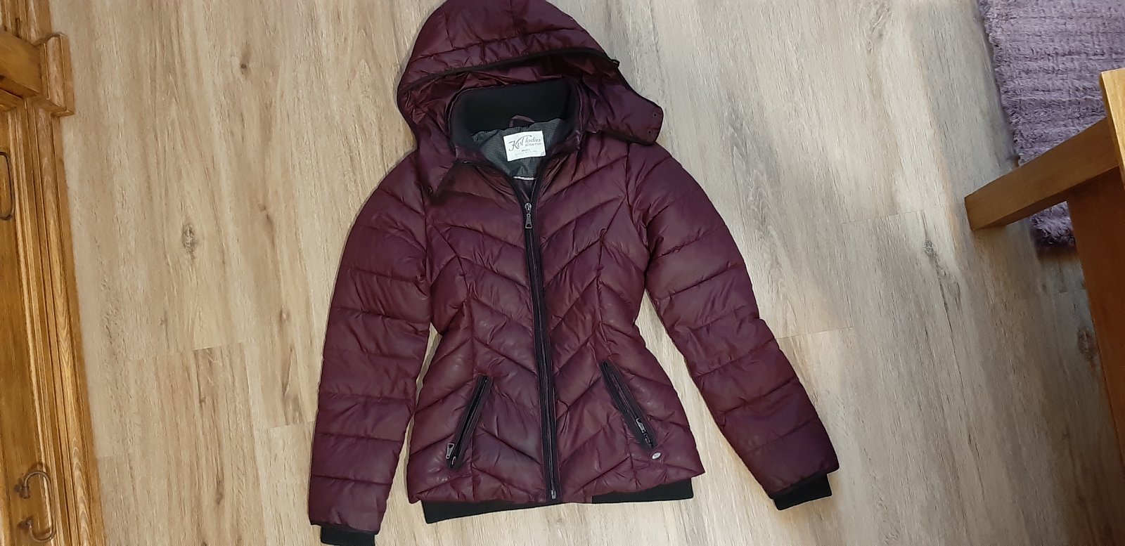Bordová zimušná bunda KVL, má už známky nosenia, rukávy sú vyšuchané.
