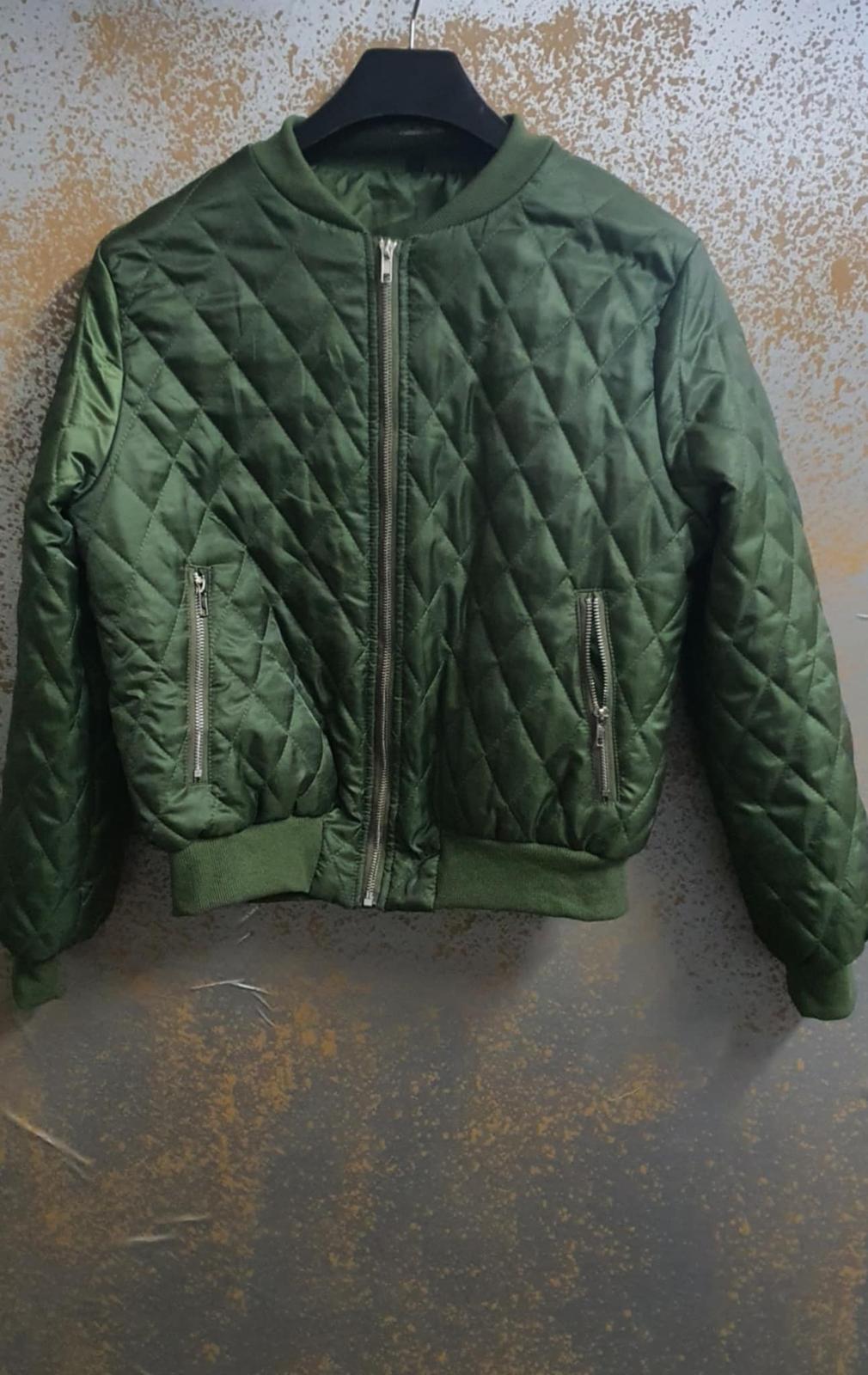 Nova a nenosena Bersha bombera, bunda volneho strihu v krasnej zelenej farbe.