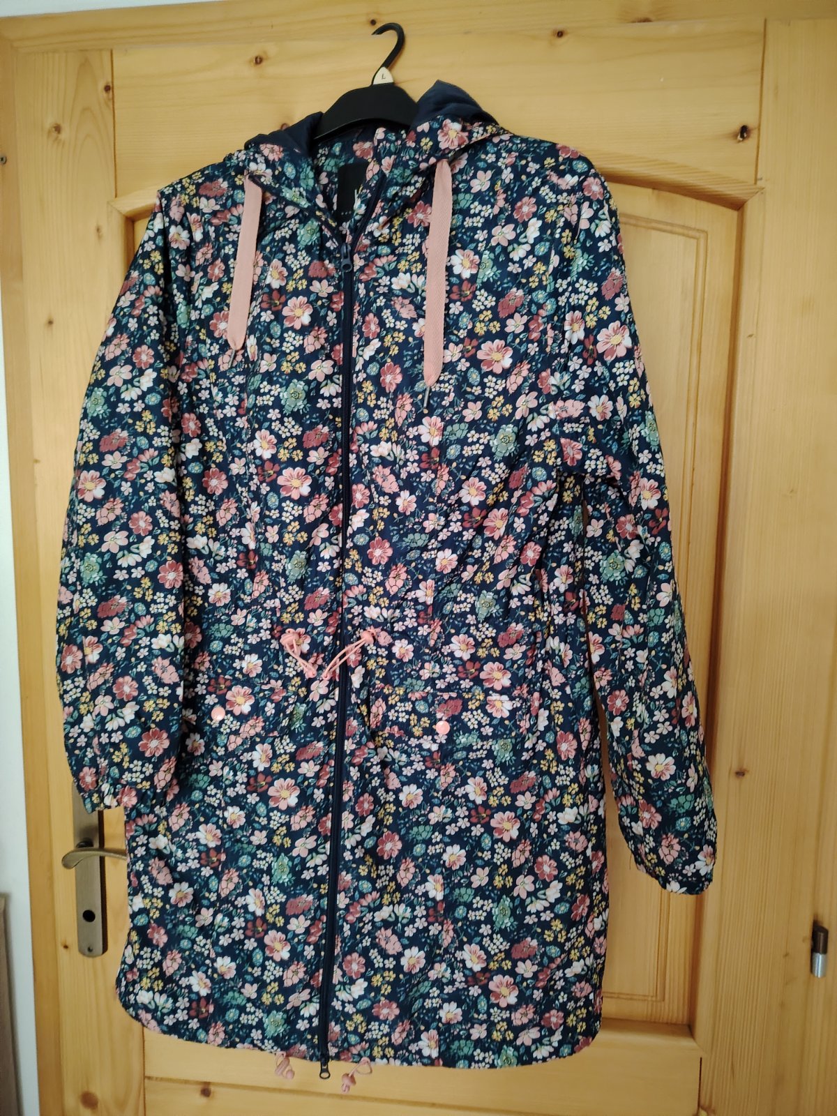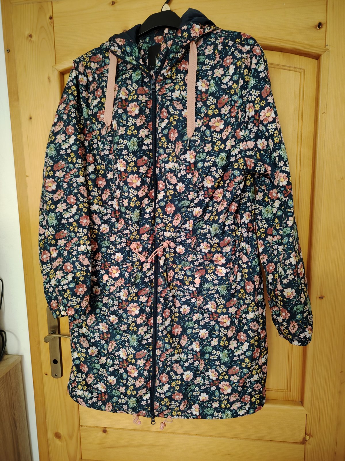 Praktická, pohodlná prechodná bunda, takmer nenosená, ako nová. Dĺžka vzadu 90 cm, vpredu 73 cm, šírka 57 cm, rukáv 63 cm, veľkosť 44.