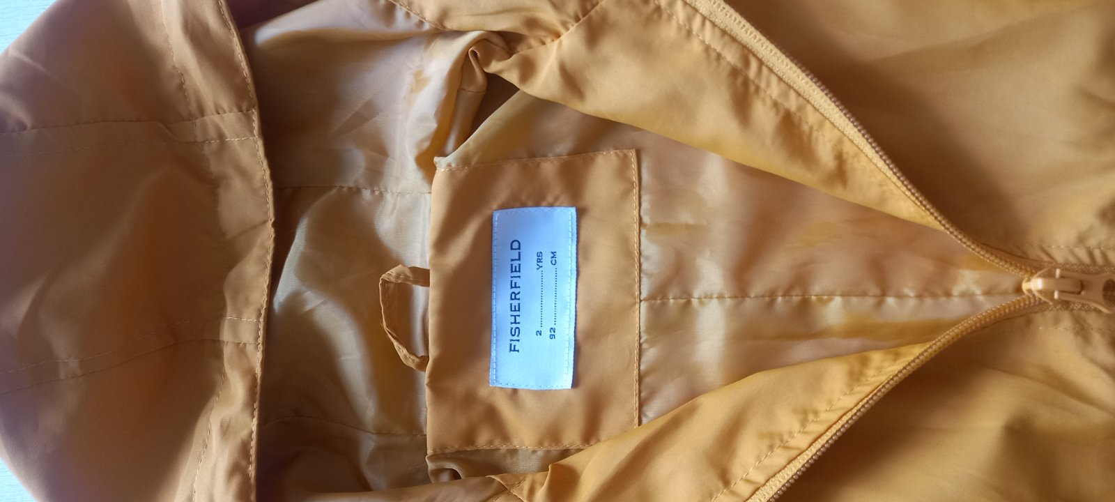 Krasna bundicka vo velmi dobrom stave -je trochu usmudlana (vid foto) Je pogumovana, takze nepremokne. Je podsita flisom, ale tenka. Velkost je uvedena na 94cm/3roky. ROZMERY: dlzka rukavu od goli...