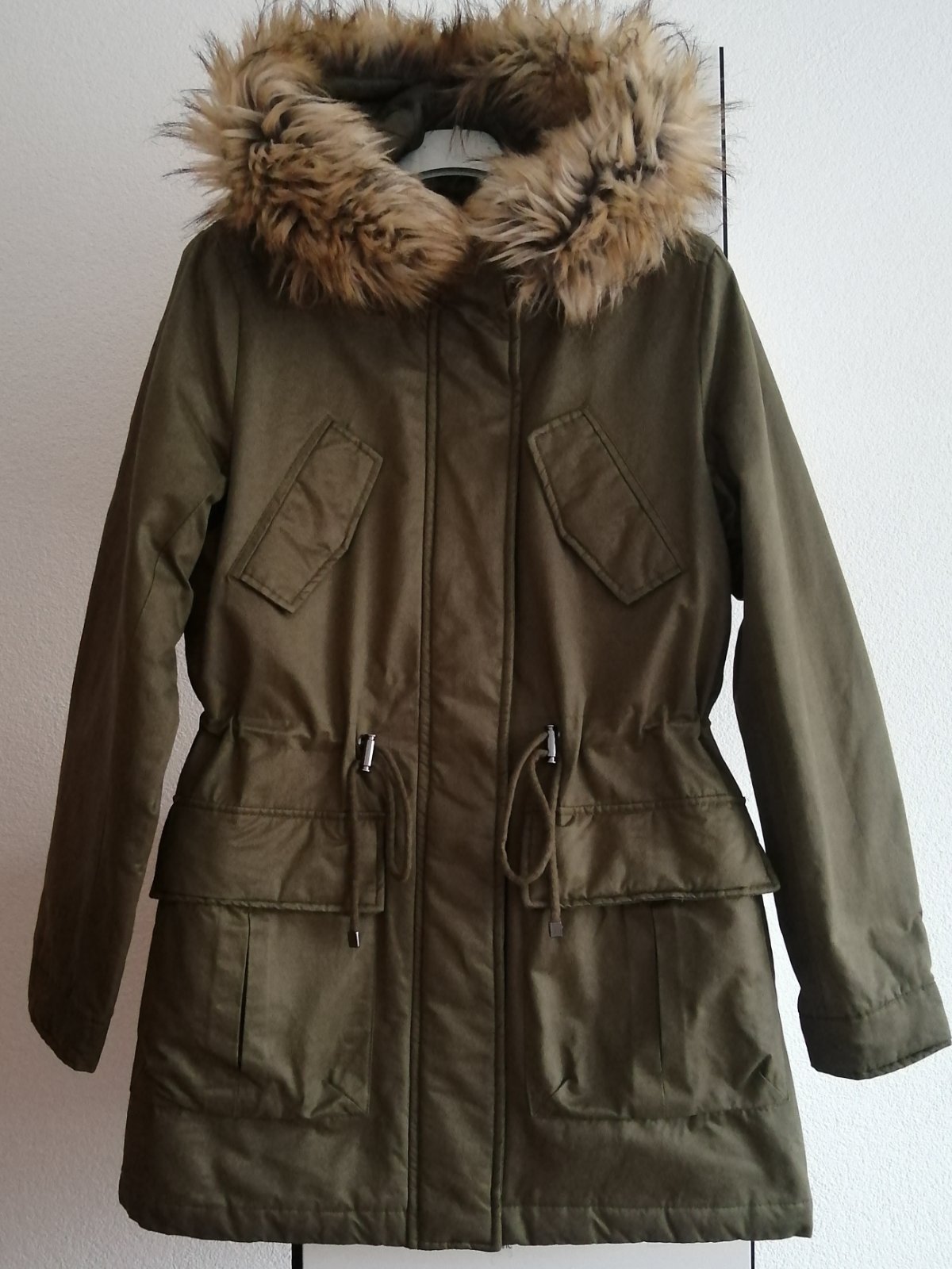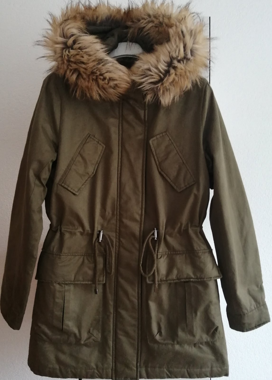 Pekná dámska bunda na zimu zn. RESERVED. Veľkosť S alebo 36 /uvedená 34 ale pri tejto značke to veľkosť zodpovedá našej 36 alebo S. Vnútro vyteplené.-vhodná na zimu. Kožušínu je možné odopnúť. Pekná olovovo- zelená farba. Vo výbornom stave, mala som ju počas jednej zimy pár - krát oblečenú na striedačku s ďalšími zimnými bundami