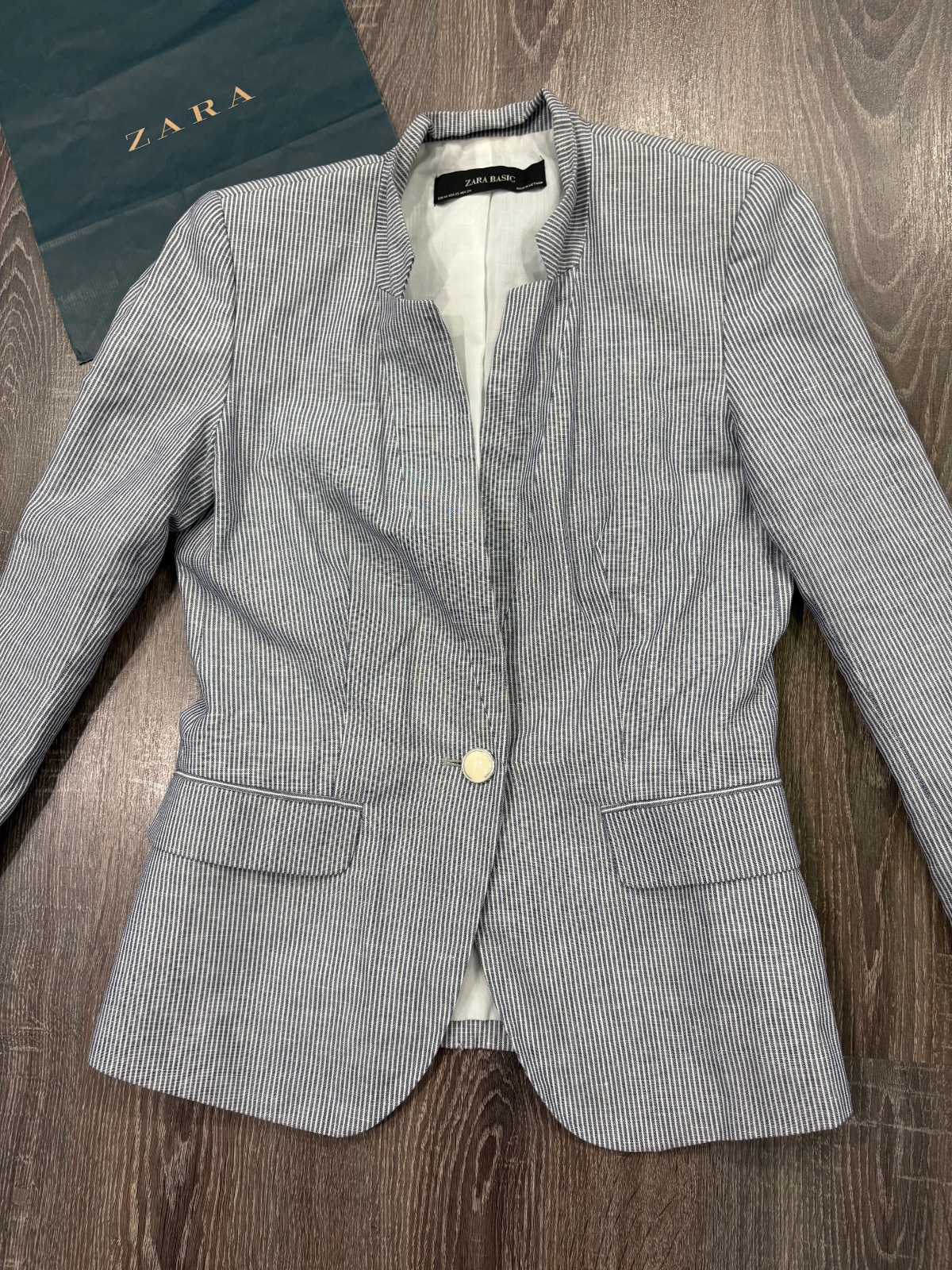 05.Zara damske pasikave sako vo velkosti XS,rukavy si viete vyhrnut ako potrebujete.Dlzka saka je 66cm,dlzka rukava od krku je 74cm a sirka v podpazusi je 43x2cm