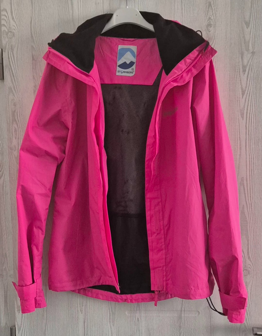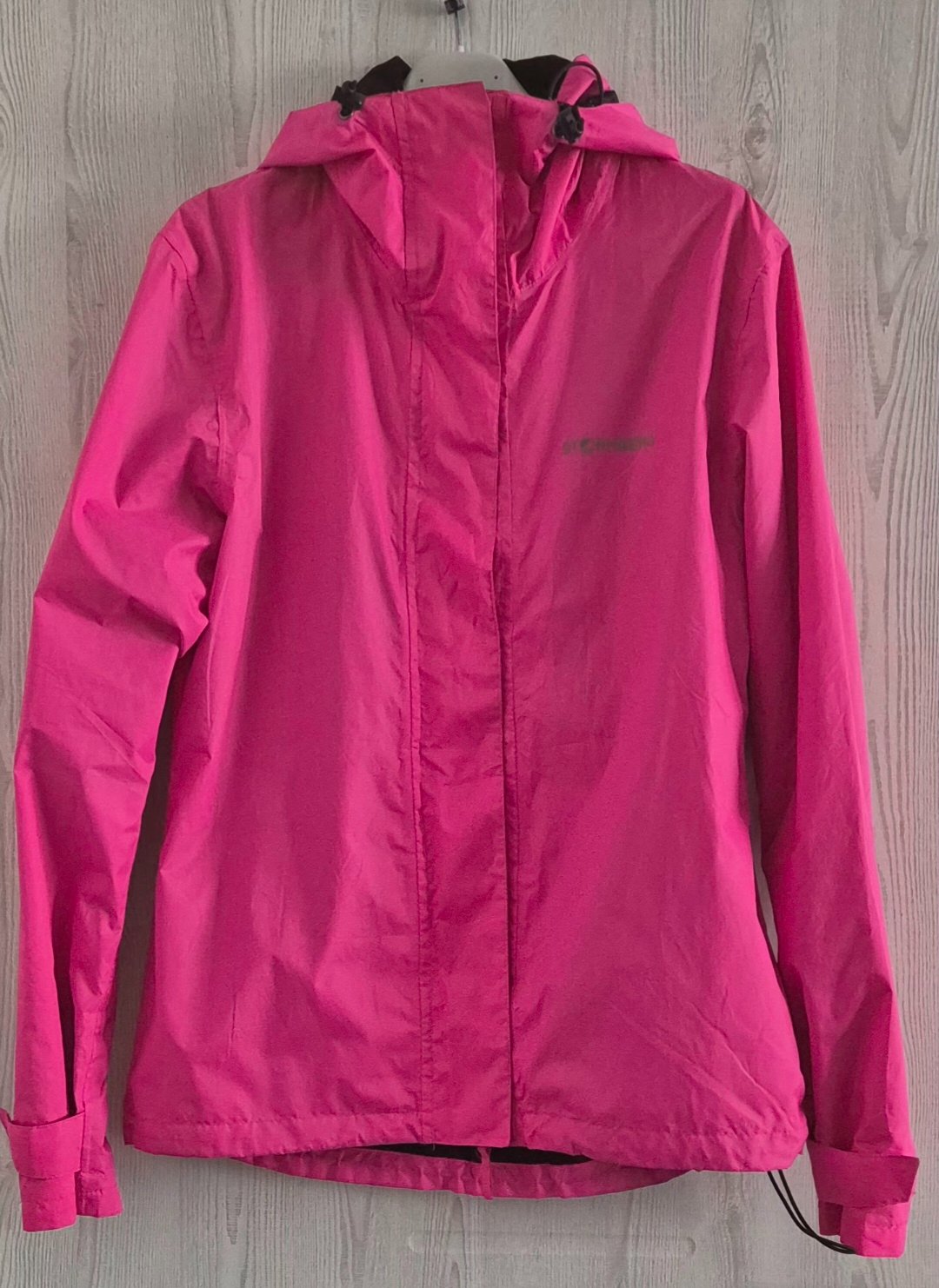 Žiarivá prechodná bunda značky Strormberg veľkosť S, sadne na, S/M, spodná časť sa dá stiahnuť, vhodná do dažďa, má zatepleny stojačik okolo krku. Stav novej.