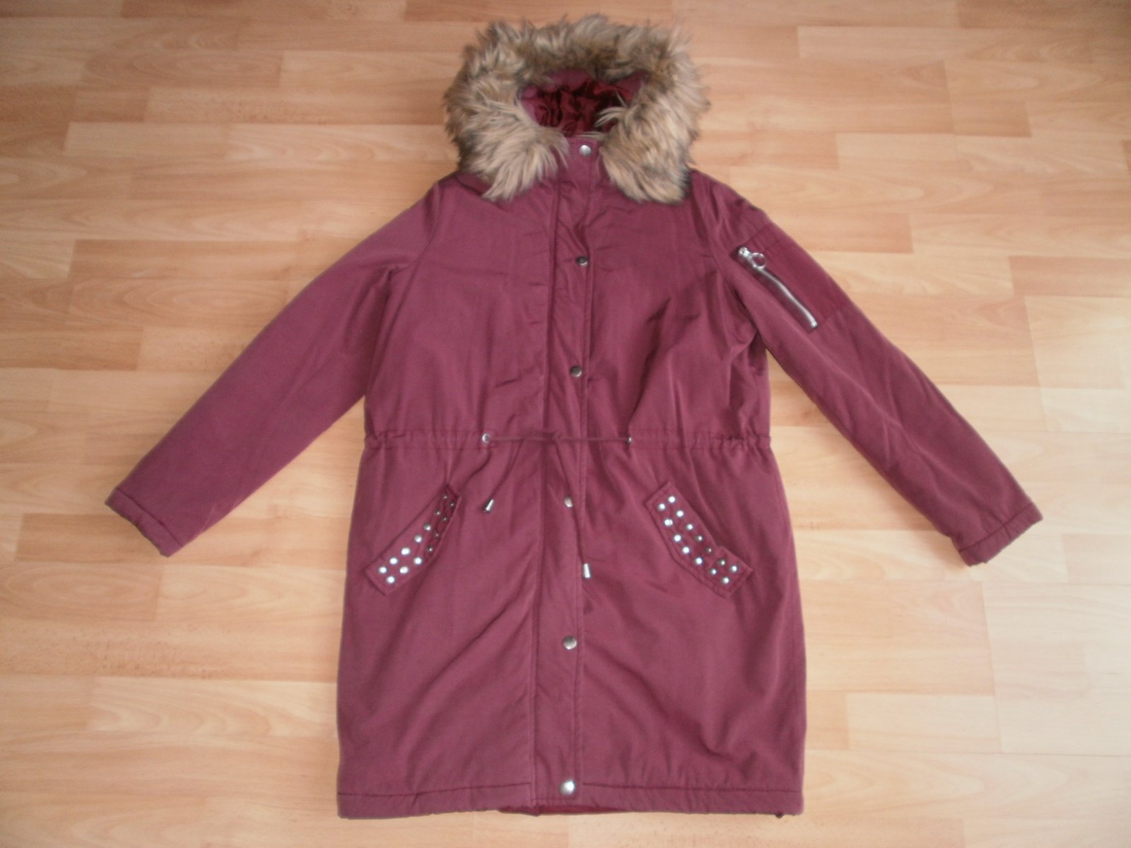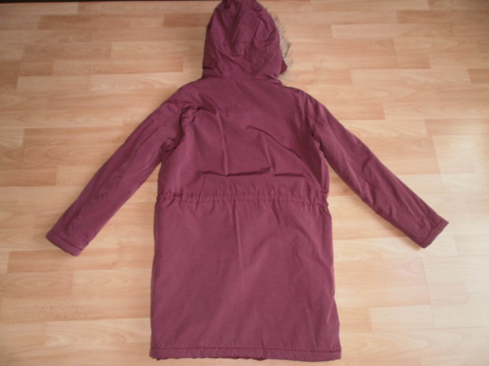 Hrubá, vatovaná, s tunelíkovým sťahovaním v páse. Trocha vidno pranie, inak je bez chýb. Veľkosť píše S/36, ale je to M/38.