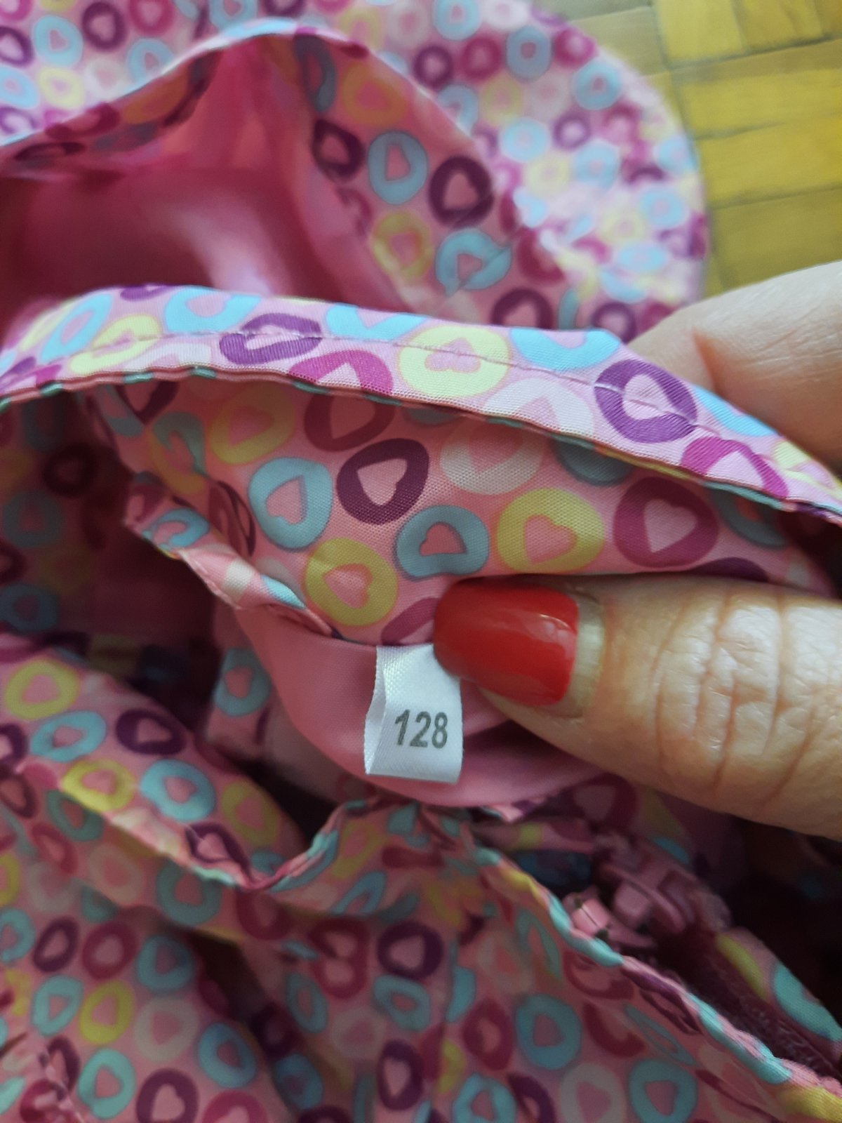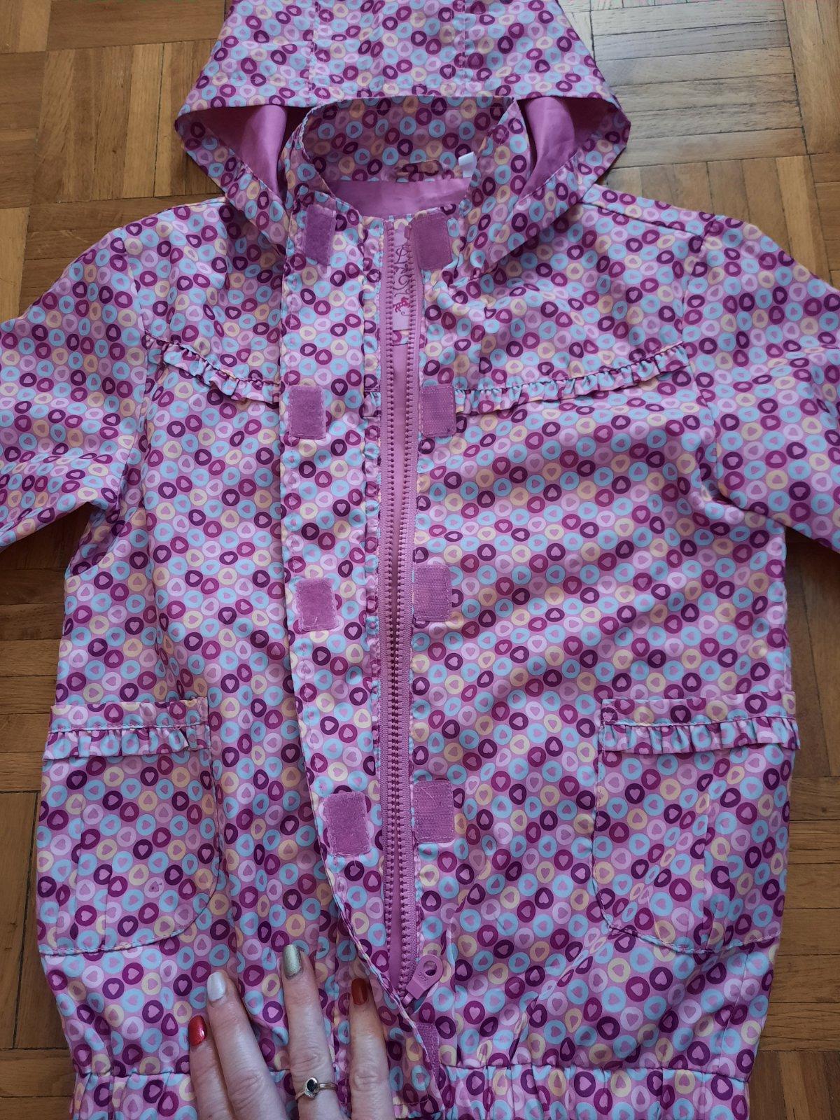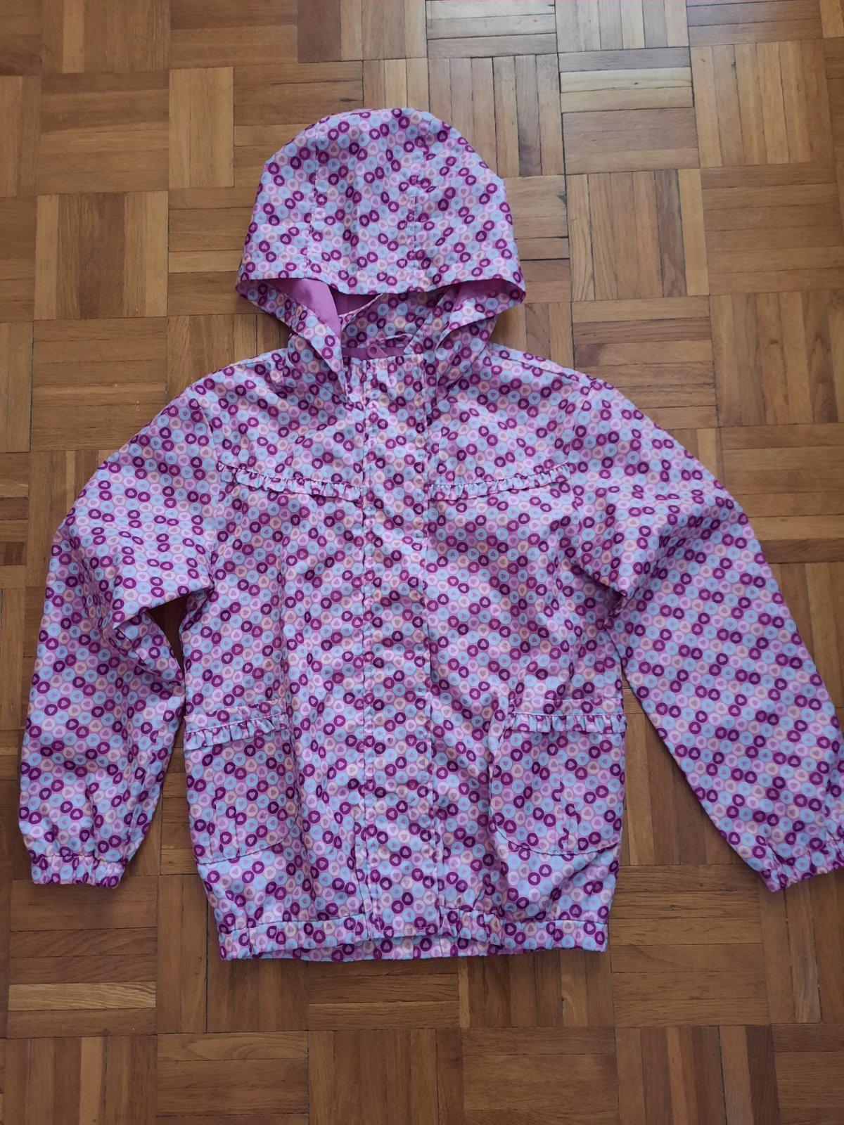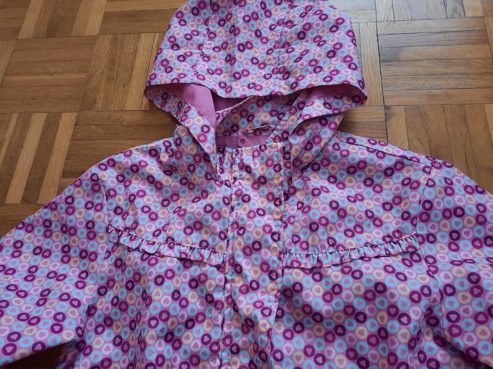 Krásna dievčenská prechodná, podšitá bunda na zips+suchý zips. Kapucňa je napevno. Vpredu sú vačky, okraje sú ozdobné. Rukávy aj spodok sú na gumu. Je v top stave.