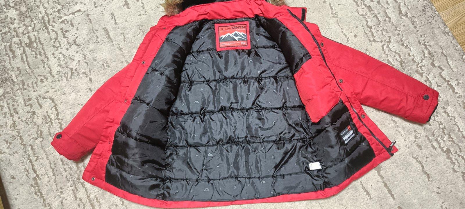 nosená 1 sezónu, veľmi dobrý stav, len na ľavom vrecku 2 dierky, inak super stav; farba je čierna, môj mobil zle fotí čiernu; materiál je vodoodpudivý; kožušina na kapuci sa dá odopnúť, syn nosil bez