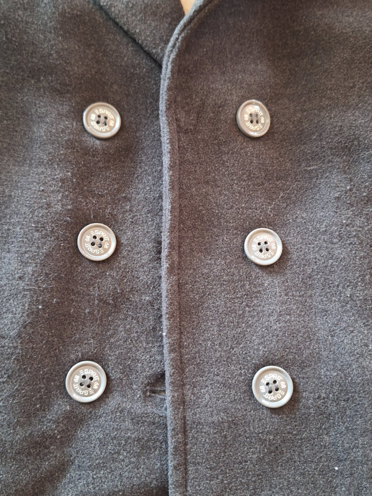 Kabátik pre dievčatko v dobrom stave, akurát na prednej strane drobné zmolky z prania, určite sa dajú odstrániť, zohľadnené v cene, inak bez poškodenia.