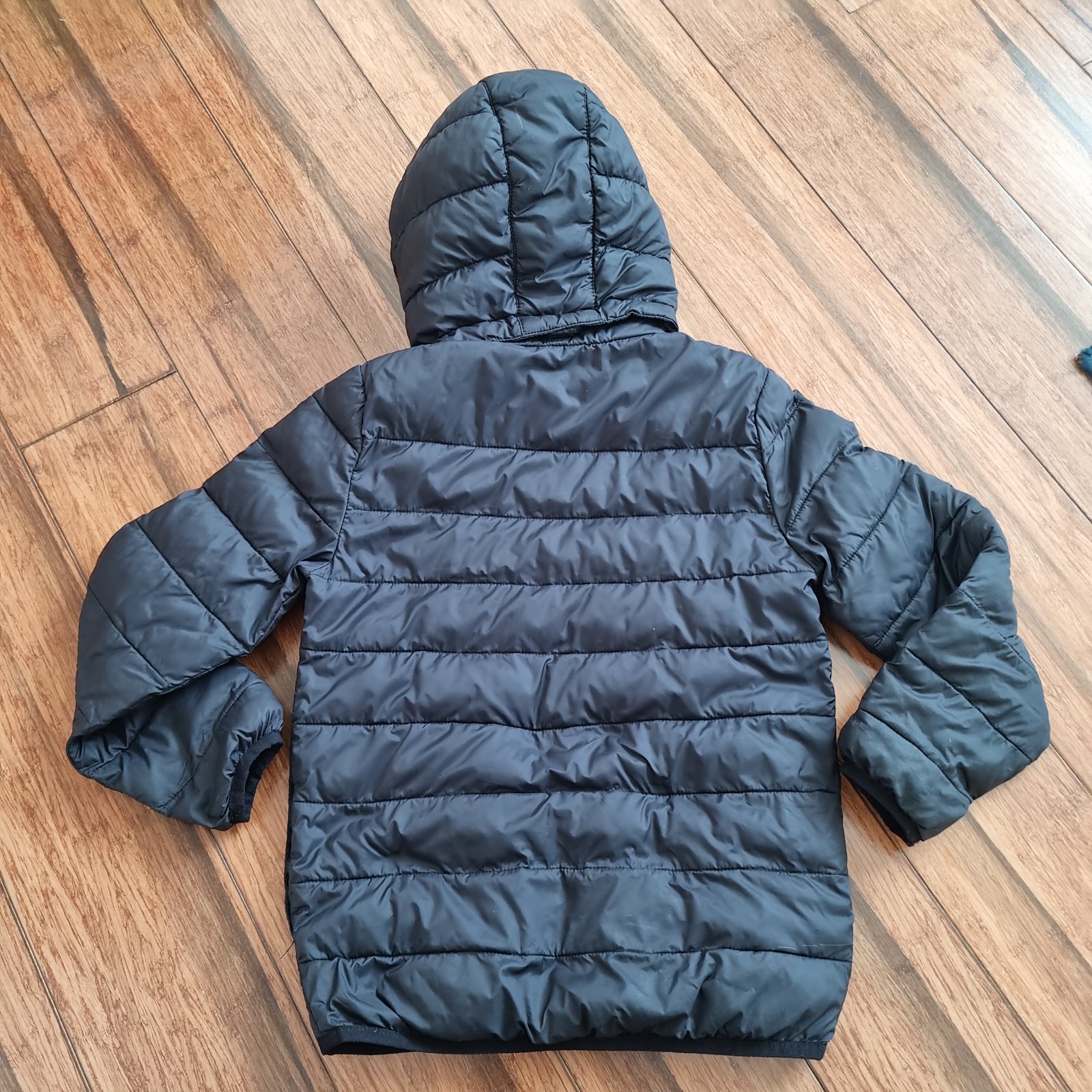 Pekná bunda na jar ci jesen, jemne vatovana, 4ukqvy aj spodok na gumu, tskze neprodukuje a dobre sedí, v 122/128 sedi