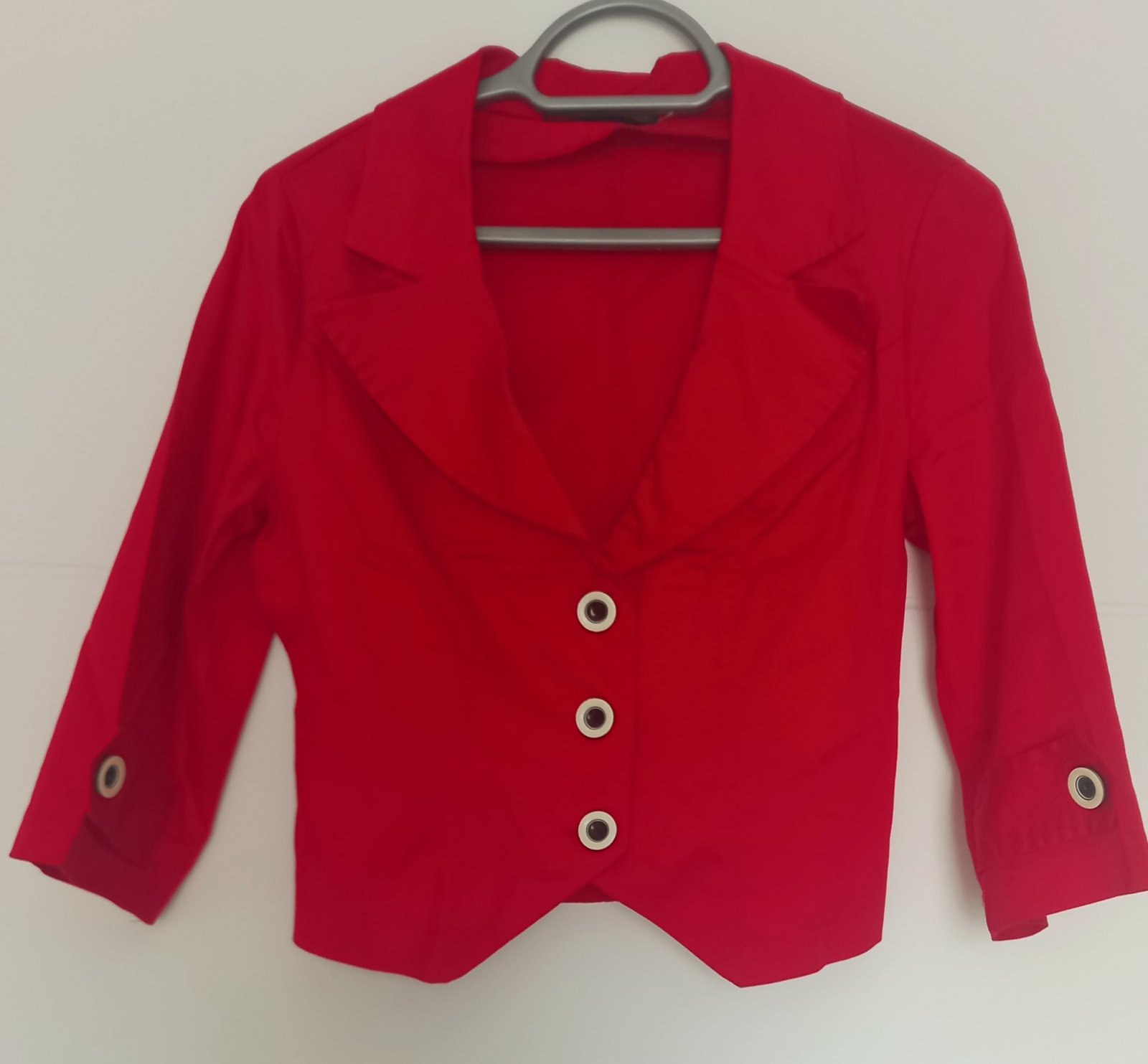 Predám výrazné červné sako. Veľk.sedí na S-M.