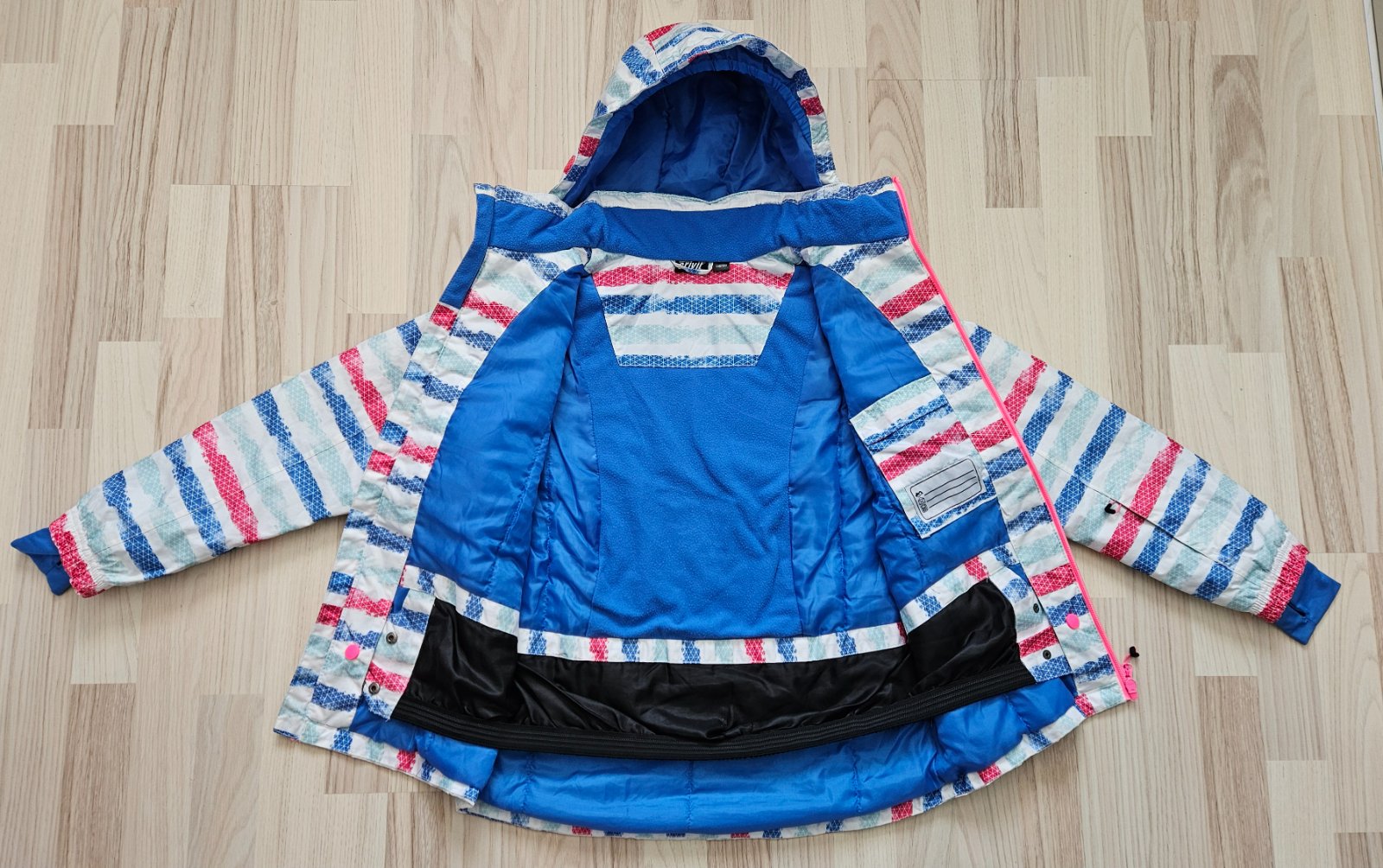 Má vrecko na skipas, snežný pás, predĺžený rúkáv cez palec, vnútorné vrecko, vyvýšené zapínanie ku krku.