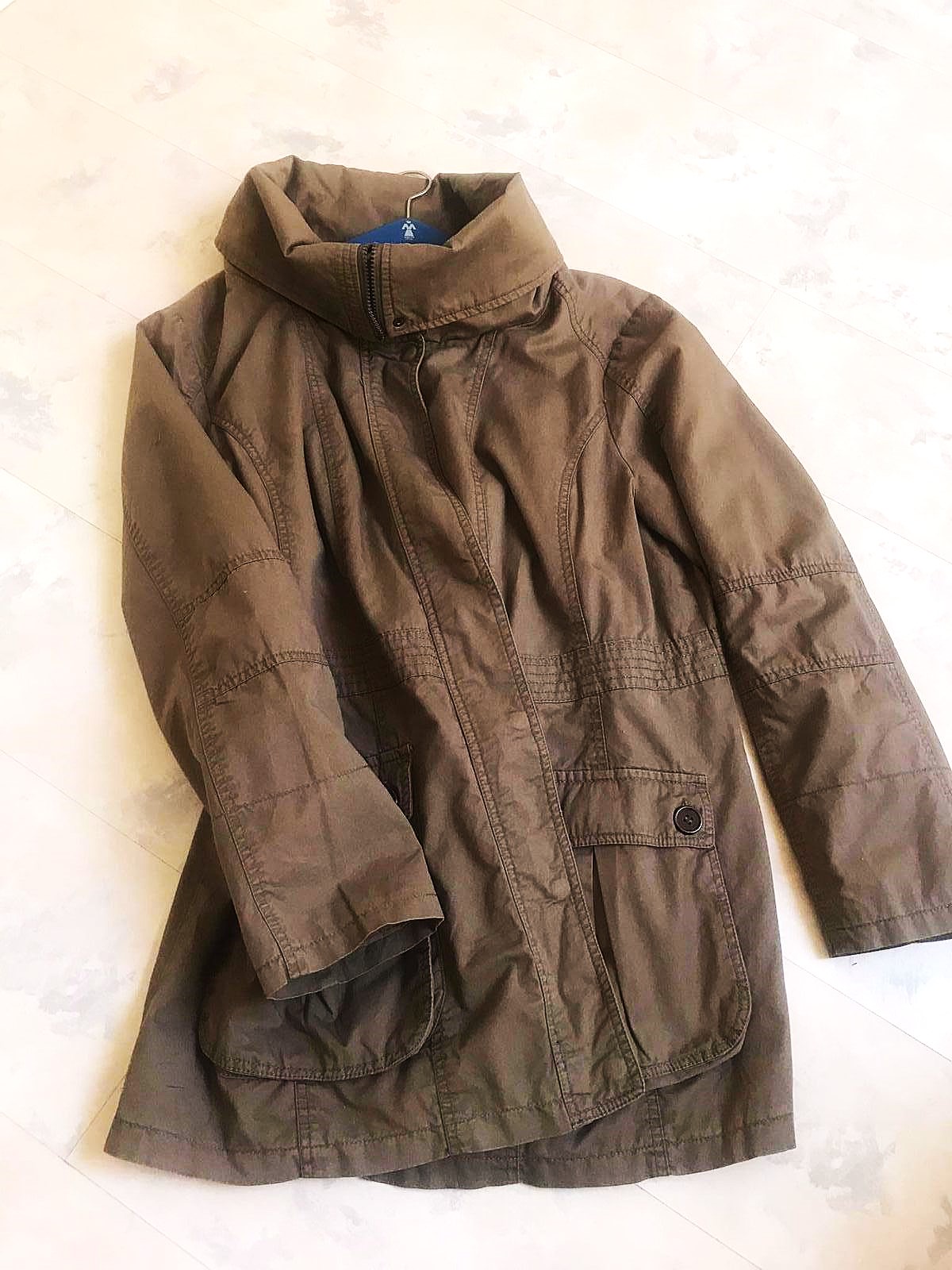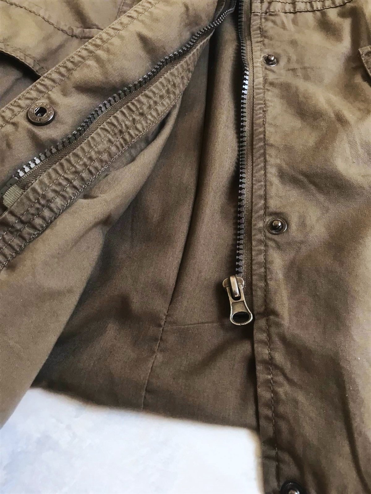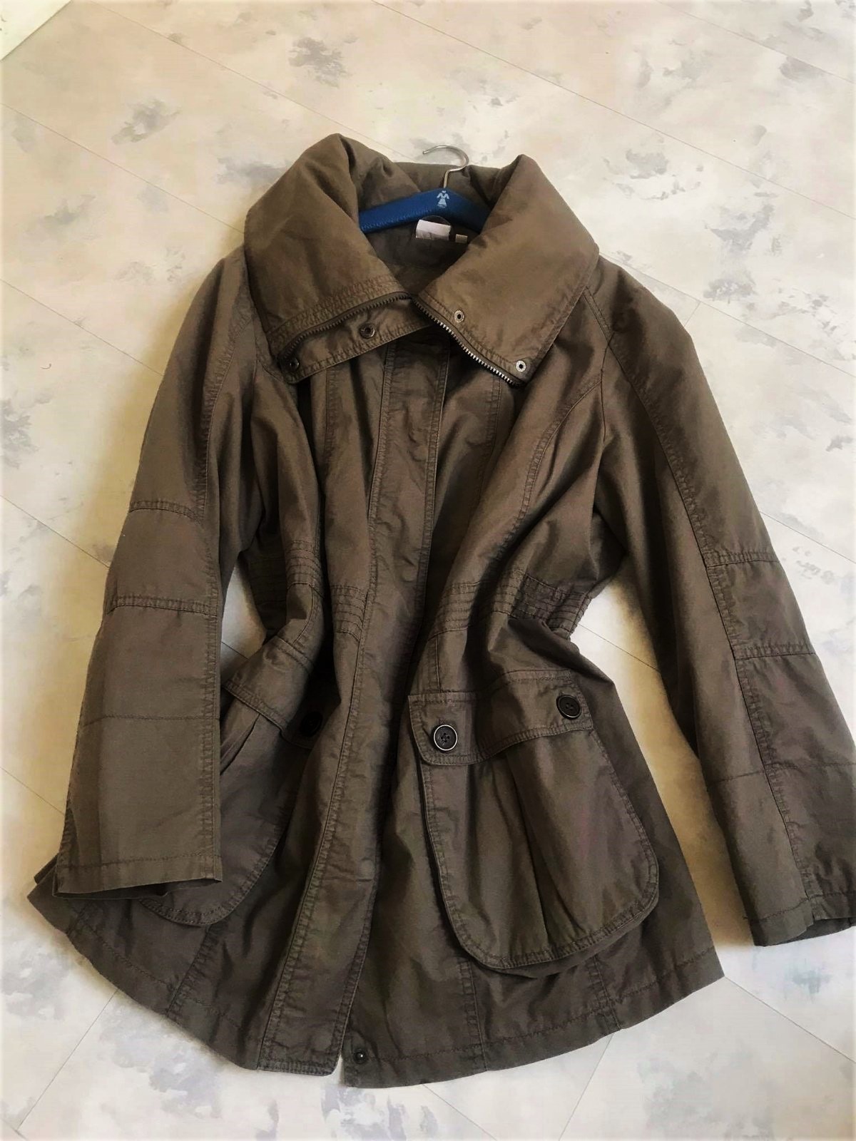 štýlová krásne ušitá a vypracovaná bunda známej odevnej značky NKD,v peknej studenej stredne hnedej farbe,výborne sedí na postave,min. nosená,materiál vyfotený,krásne detaily,vrecká,zipsy,variabilný golier,nosí sa buď rozzipsovaný alebo ako ohnutý rolák,udávaná veľkosť 50,rozmery : dlžka celkom = 80 cm,dlžka od pazuchy dole = 52 cm, šírka meraná pod pazuchou = 68/70 x 2 cm, ramená = 11 cm, vonkajšie dlžka rukáva = 63 cm