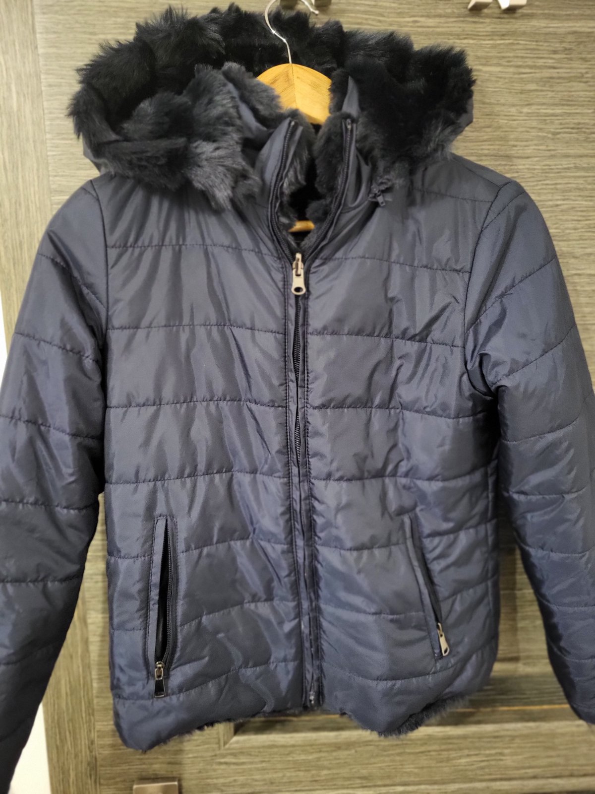 Nosená,v dobrom stave,prana šetrne,výplň je v poriadku,pri fotení som si všimla malinkú dierku na rukáve,inak je krásna,ešte poslúži