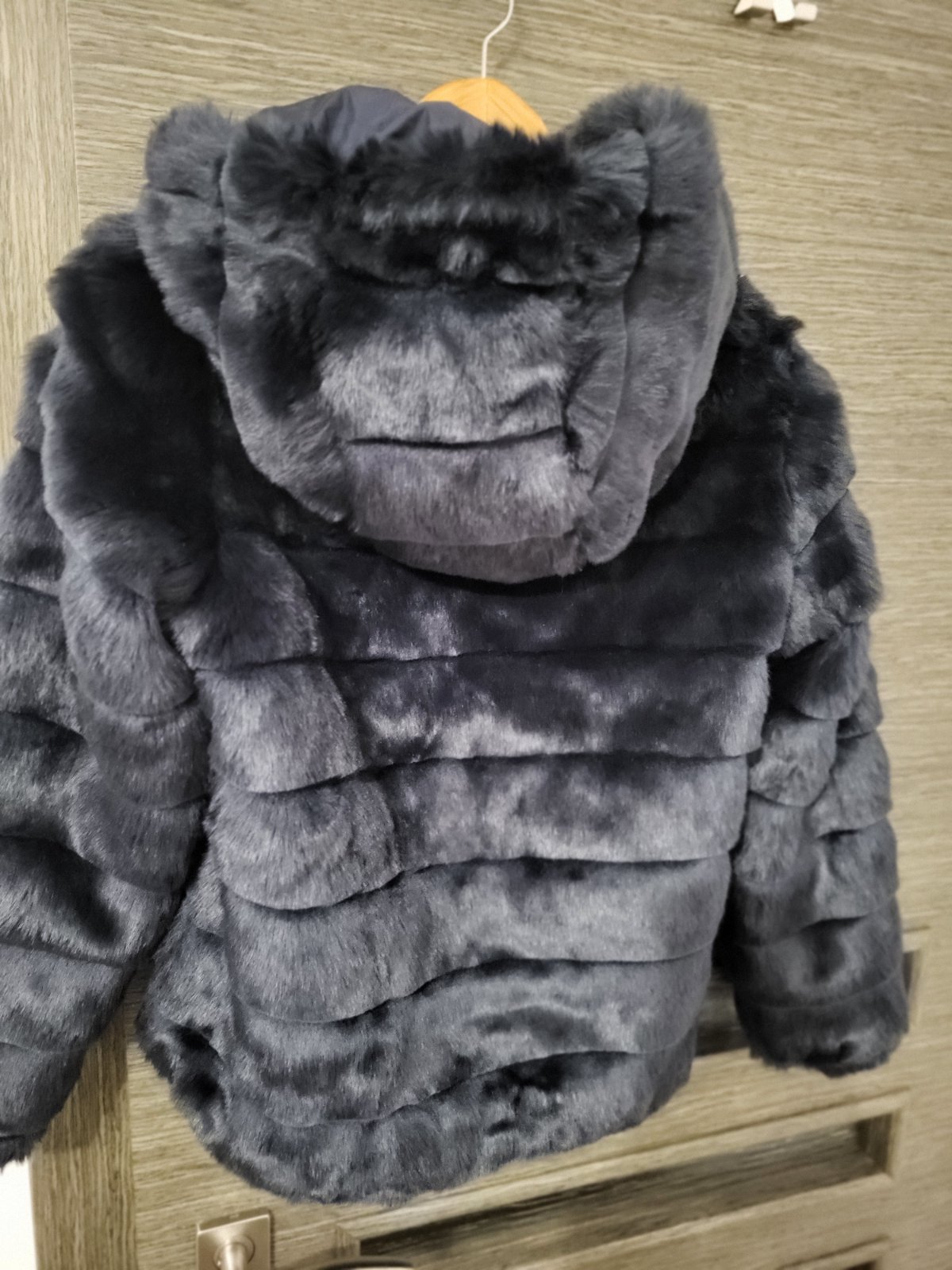 Predĺžená bunda s kapucňou s kozuskom, veľmi dobrý stav bez chyb, používaná na striedačku s ďalšími 5, takže malo nosena.