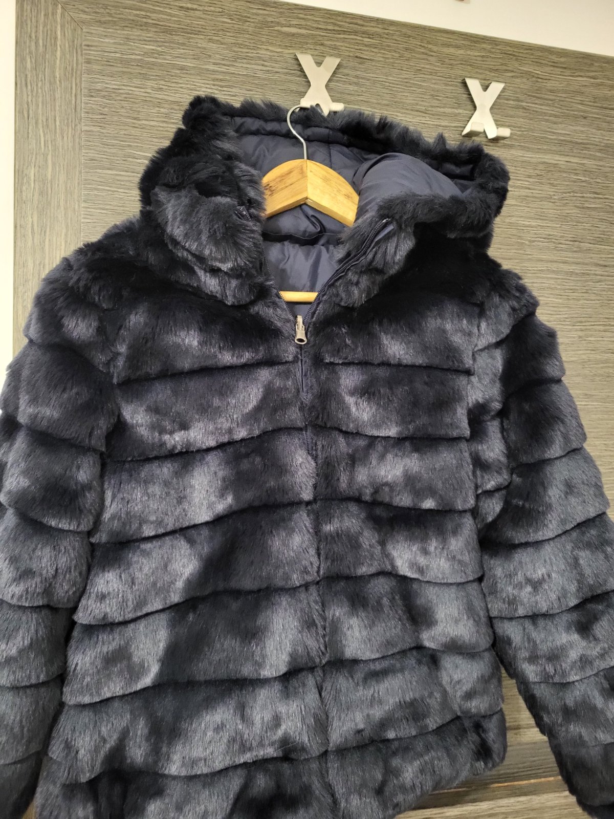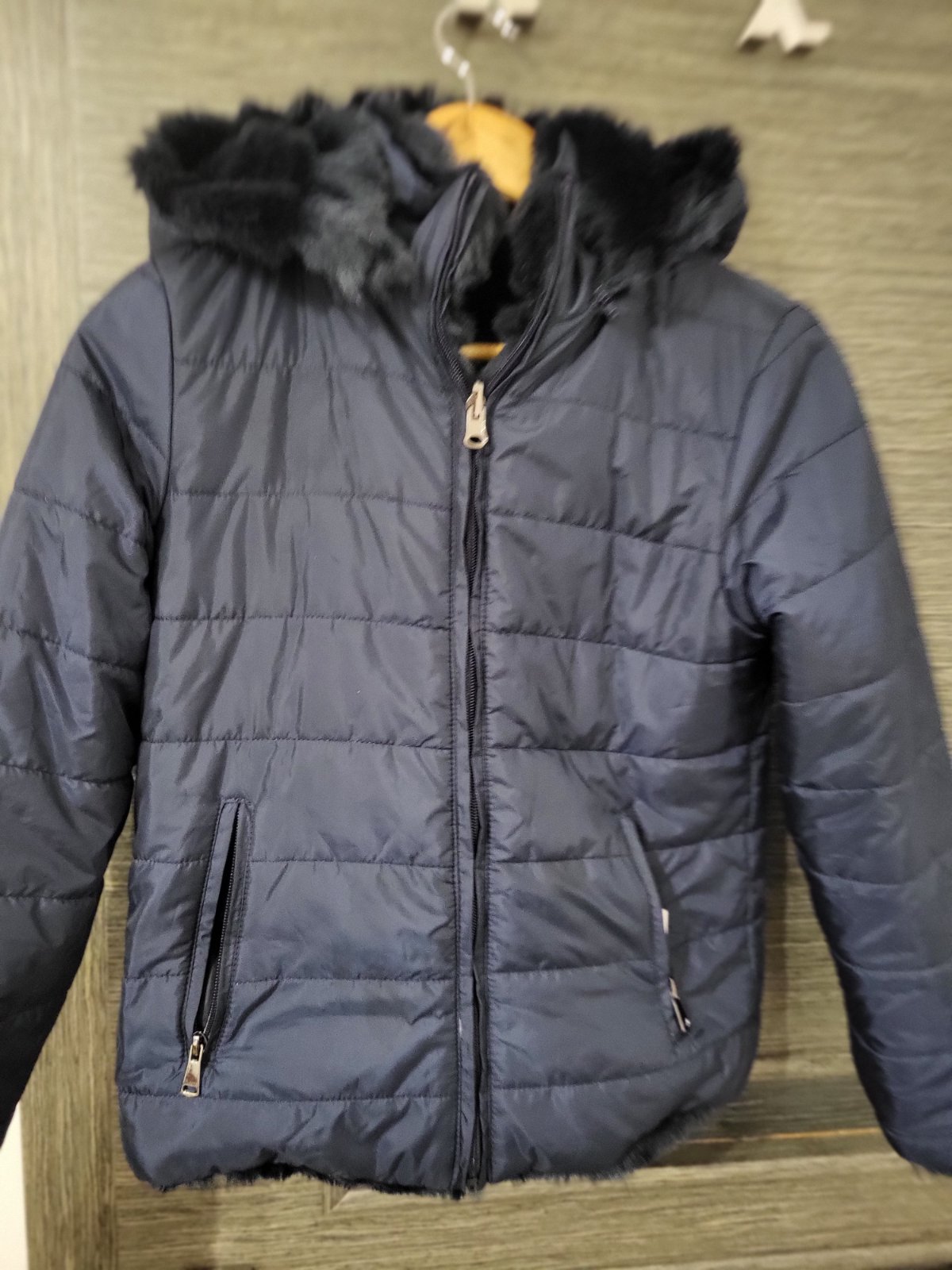 Predam tmavomodru obostranu bundu, velkost 152. Zjednej strany je to krasny umely kozustek a z druhej strany styl vetrovky. Bohuzial nam uz je mala. Cena 19 € + postovne.