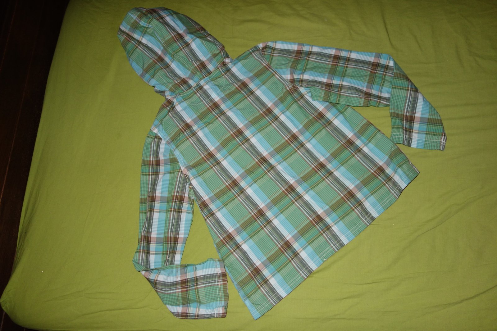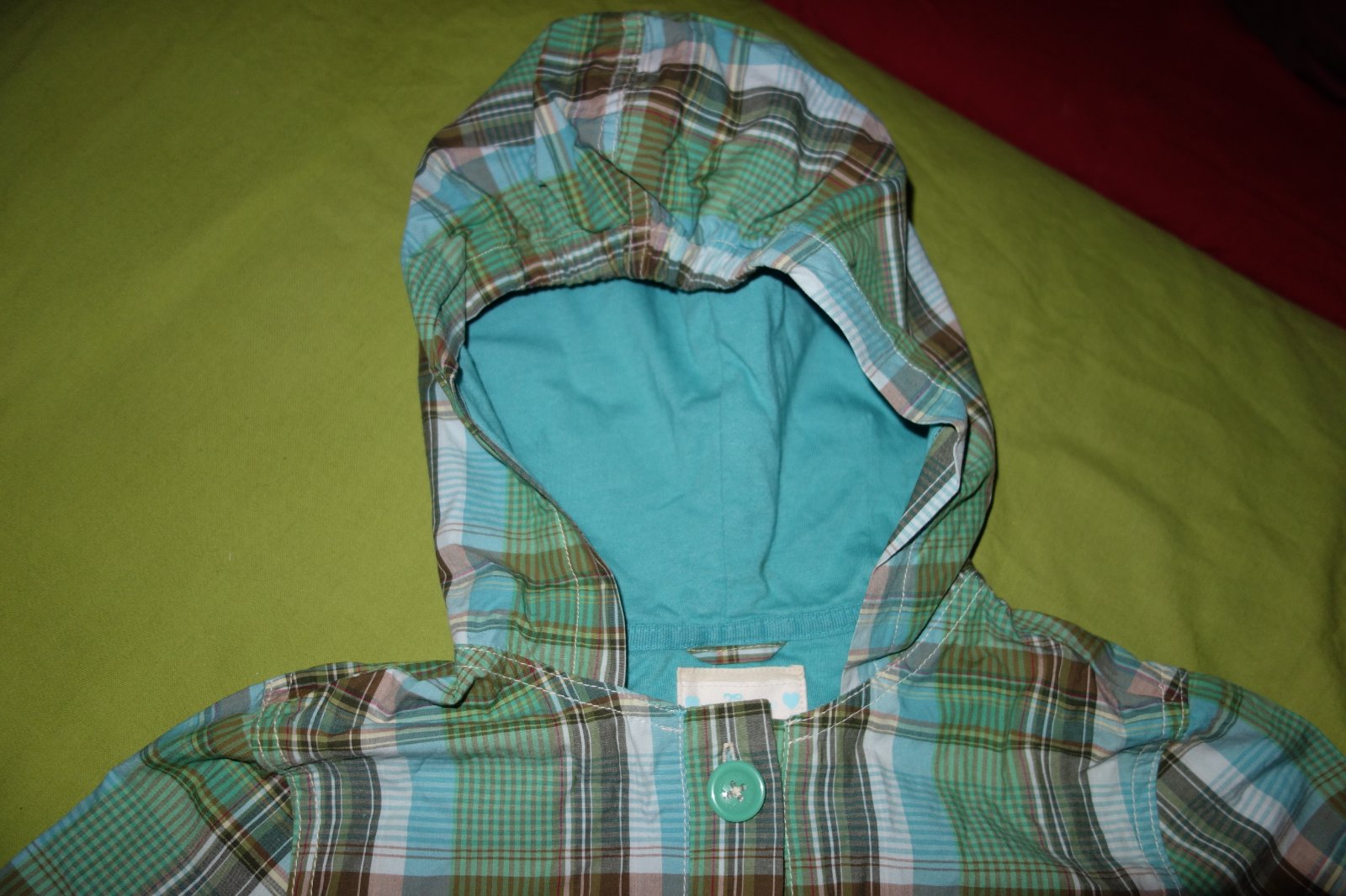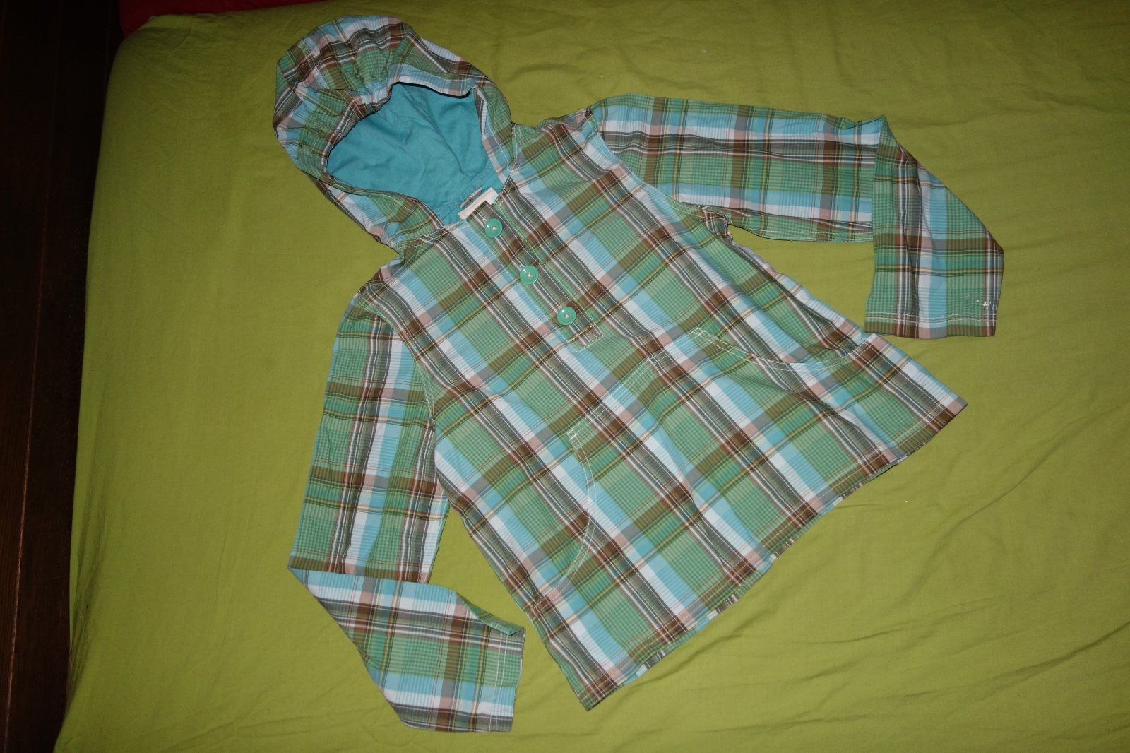 Pekna tenka bundicka s kapucnou vo velmi dobrom stave. Nie je ani podsita.