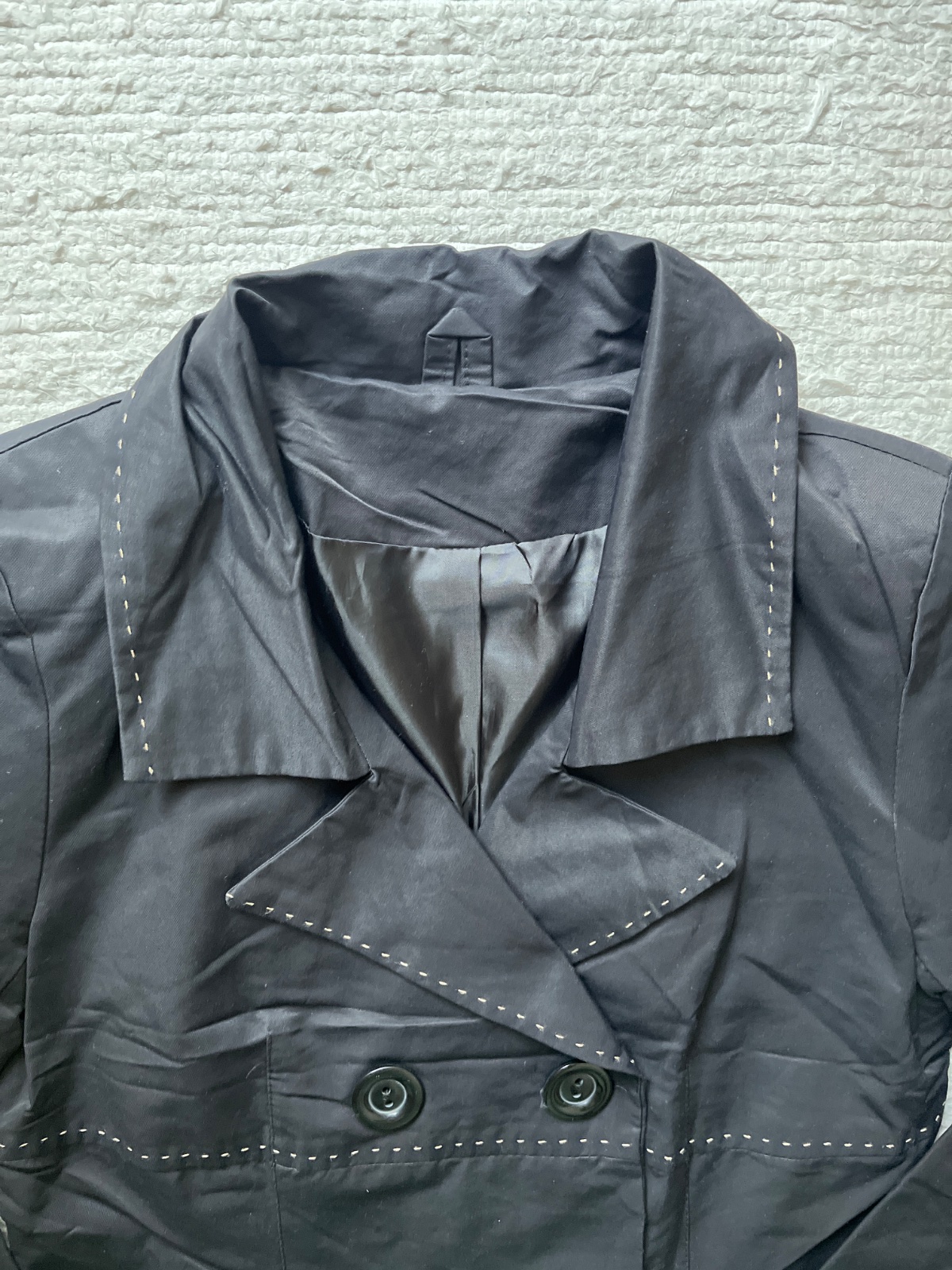 sirka v podpazuší 45cm, pod prsiami 41cm, pas 44cm, dĺžka 82cm, rameno 9,5cm, dĺžka rukáva od ramena 62cm, vnútorná dĺžka rukáva 43cm, čierna farba, nie je lesklý, balonacik párkrát oblečený
