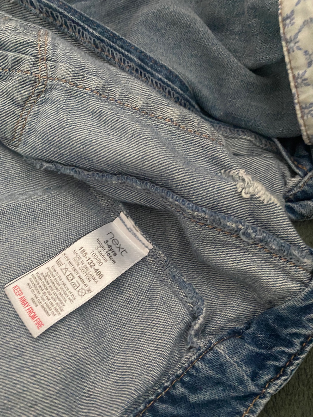 Bledomodrá vyšívaná džínsová bunda Next. Je z ľahkého materiálu. Veľkosť uvedená 3-4 roky. Celková dĺžka kabátika je 39 cm, šírka na hrudníku je 33 cm.