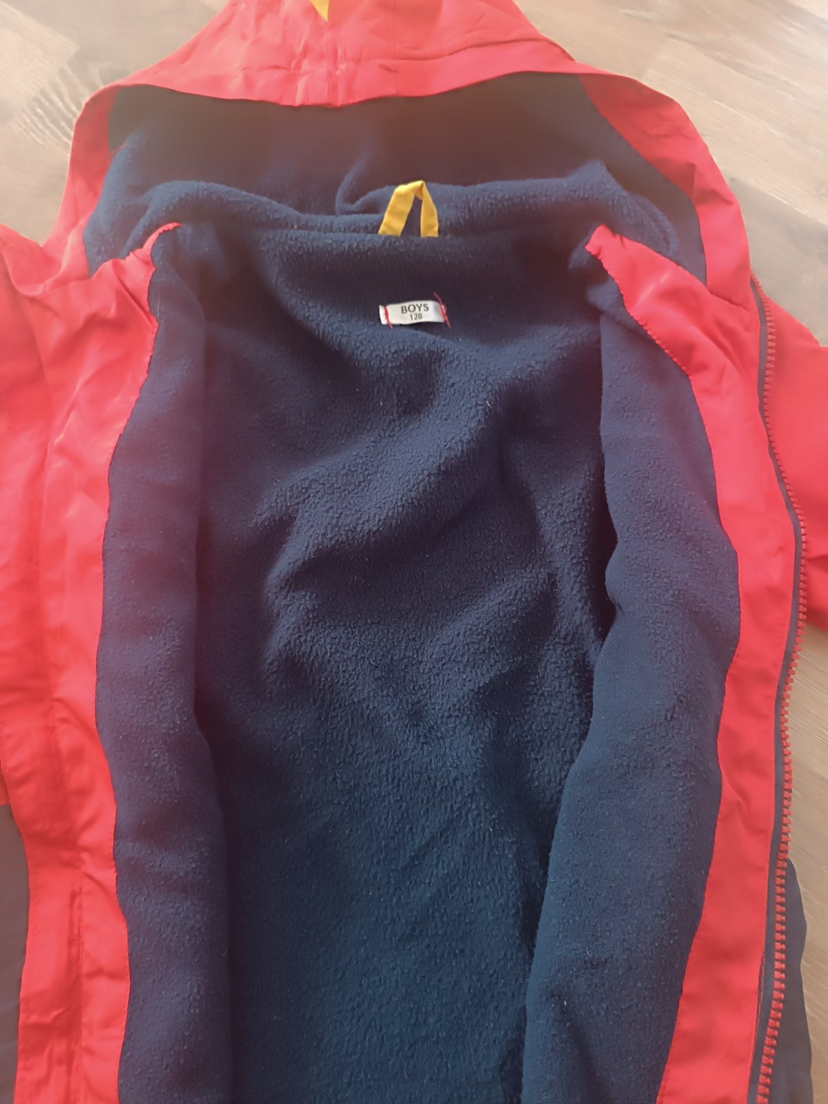 Prechodná zateplená bunda, na zips, s kapucňou, bez vreciek.