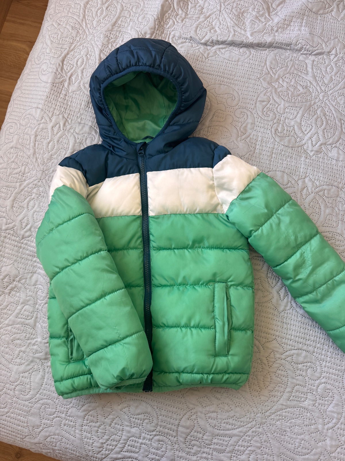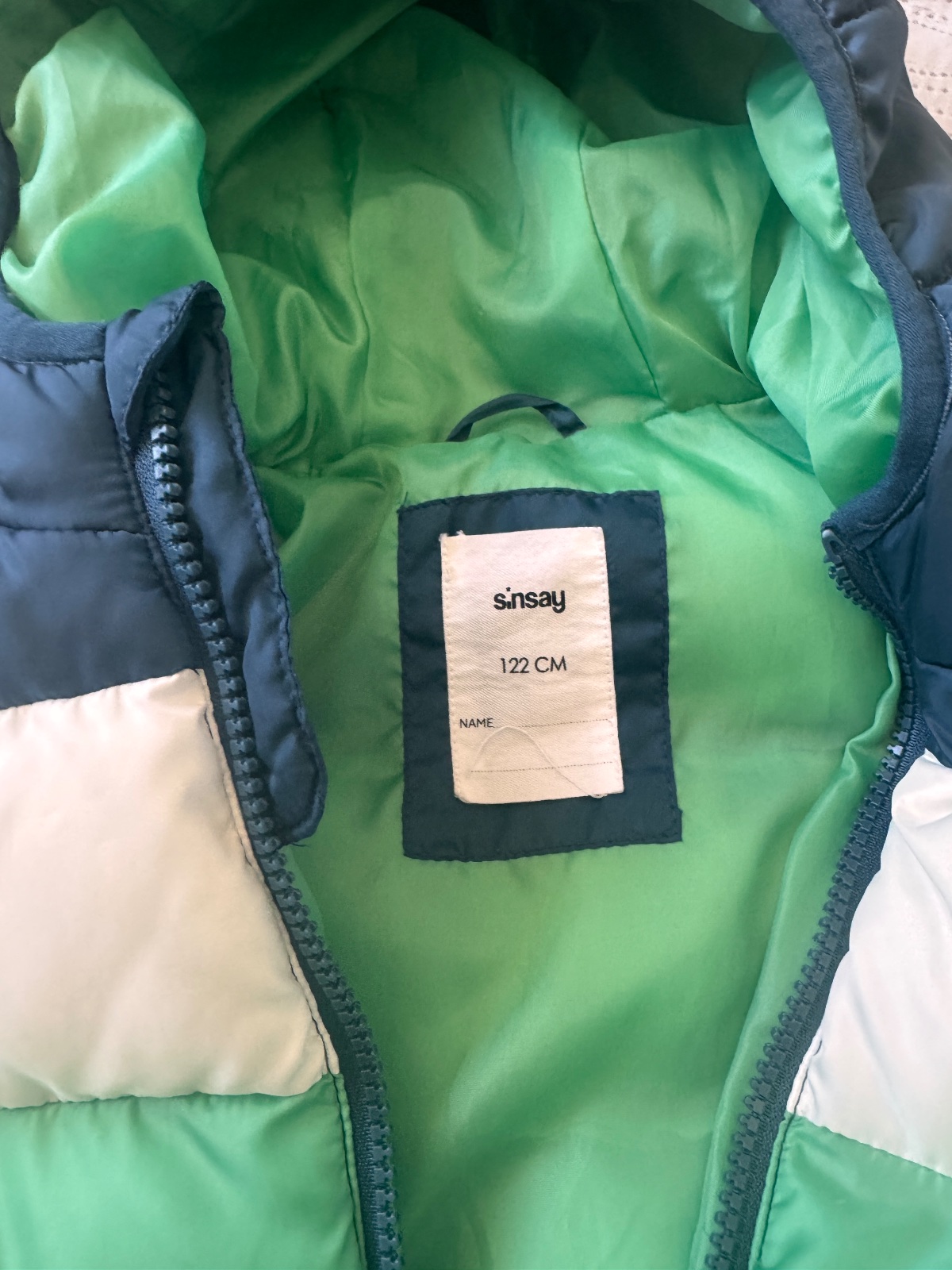 Parádna bunda, syn ju mal veľmi rad. Na jednom rukáve zatiahnutie latky, inak makkulinka, kúpili sme si o cislo väčšiu. Zostatková cena. Pošta 3,40 packeta. Pri kúpe iných veci z bazáru odratam z packety 1€.