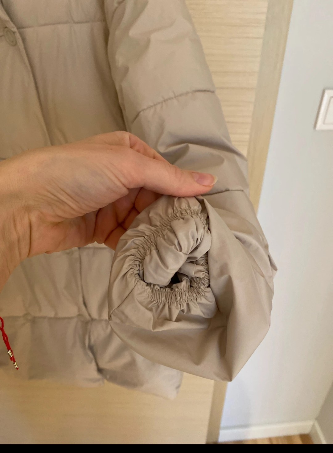 Nepoškodena ako nová. Je teplá,zvnútra teplý flis aj na kapucni,čo je v zime veľke plus. V páse na šnúrku.,aj dole je šnúrka. Kapucňa sa dá dať dole.