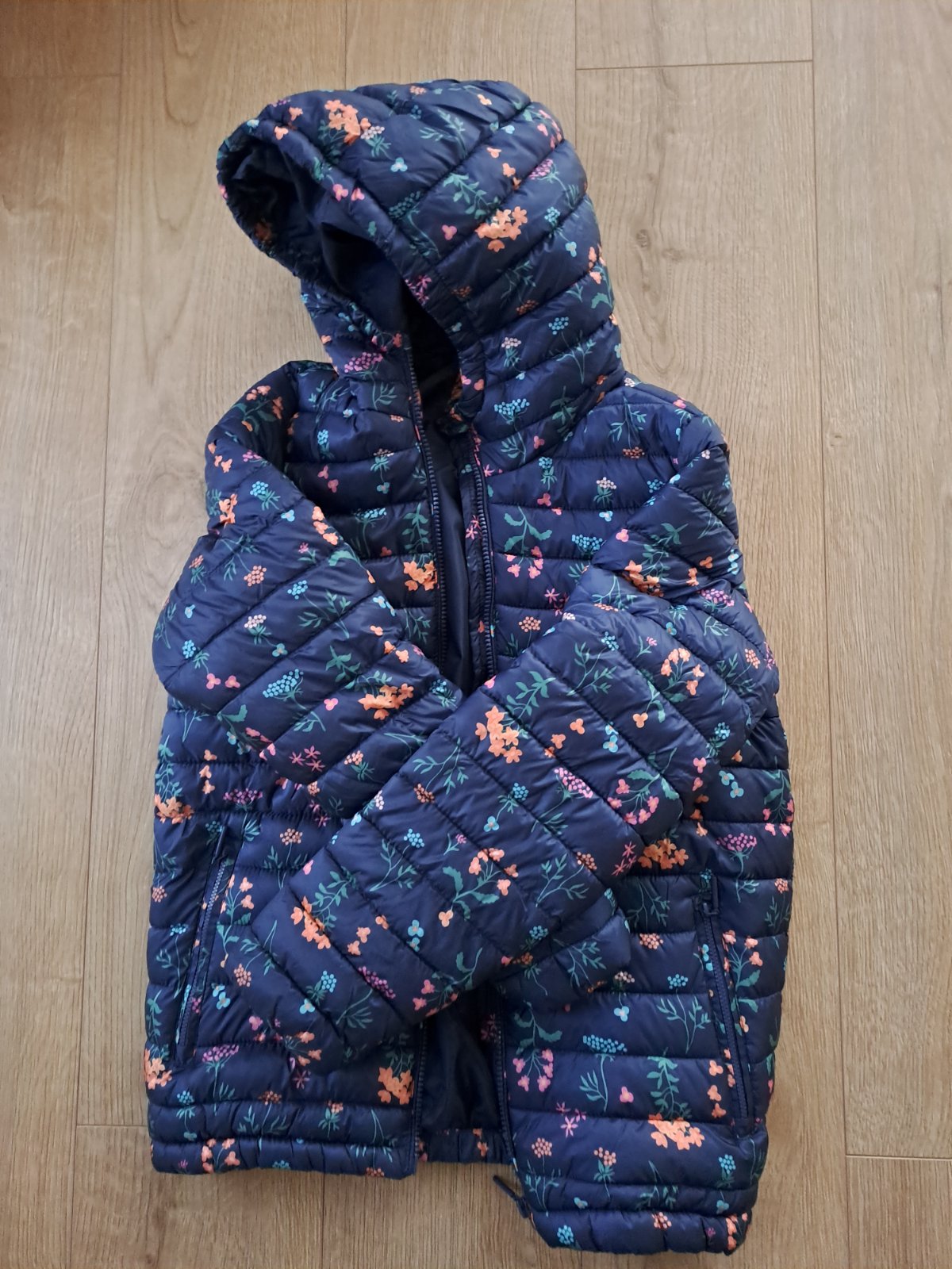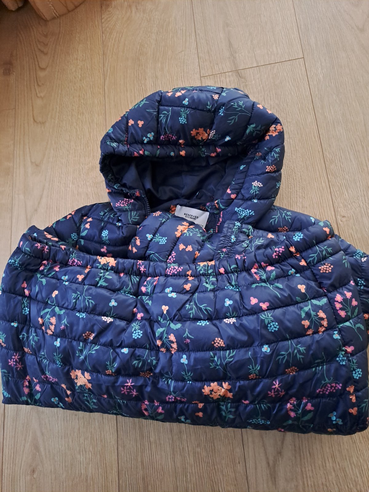 parkrat oblecena, pekna tmavomodra (foto skresluje), po bokoch zips (vid foto), kapucna napevno