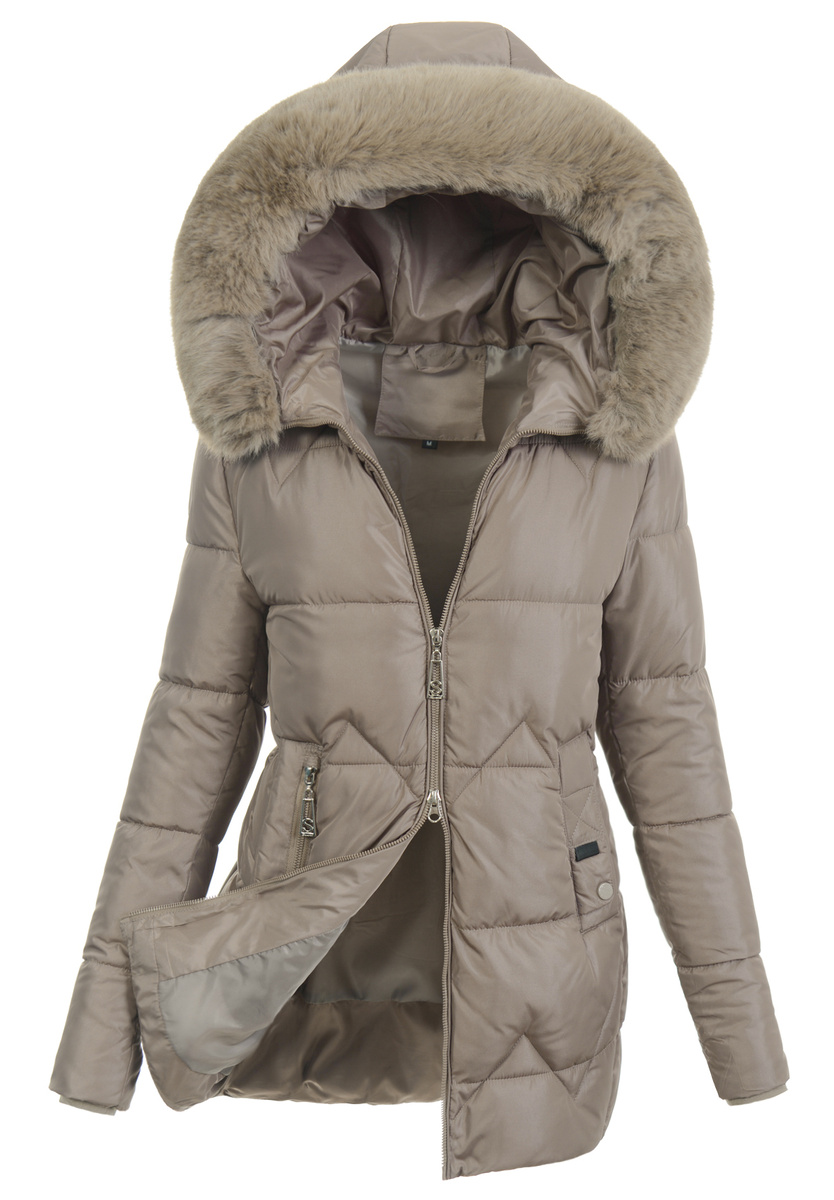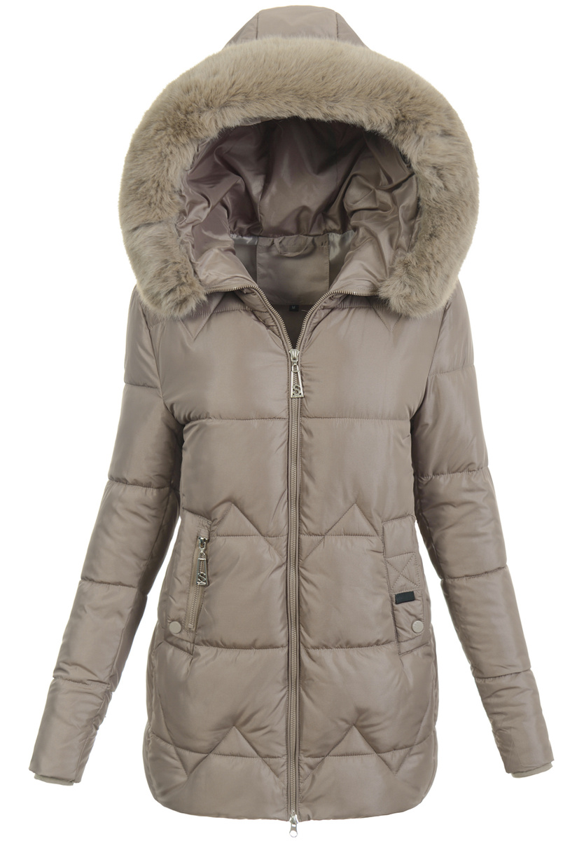 Táto elegantná dámska zimná bunda v béžovej farbe spája moderný dizajn s praktickými detailmi, ktoré oceníte počas chladných dní.