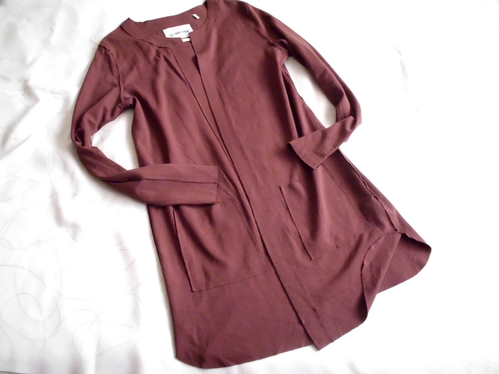 Predám kardigan Rich&Royal vel. S aj M, dĺžka 89 cm, šírka 47 cm, rukáv 68 cm od pleca, zloženie na foto , bez zapínania, 2 vrecká, kvalitný veľmi príjemný pružný materiál, pekná bordovo-staroružová farba, top stav