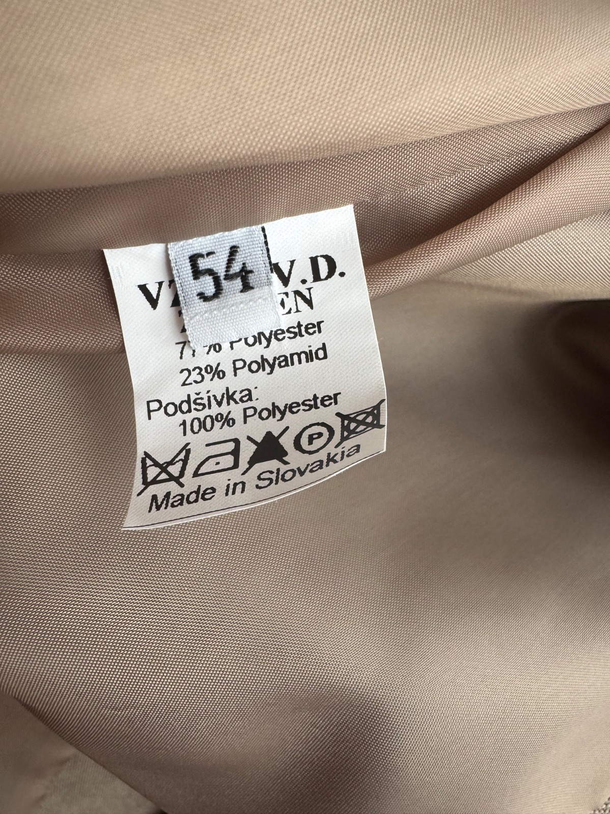 Top stav, farba taka piesková s odleskom. Na lístku 48, ale určite väčšie. Šírka cez prsia 65cm x2, dĺžka 77cm