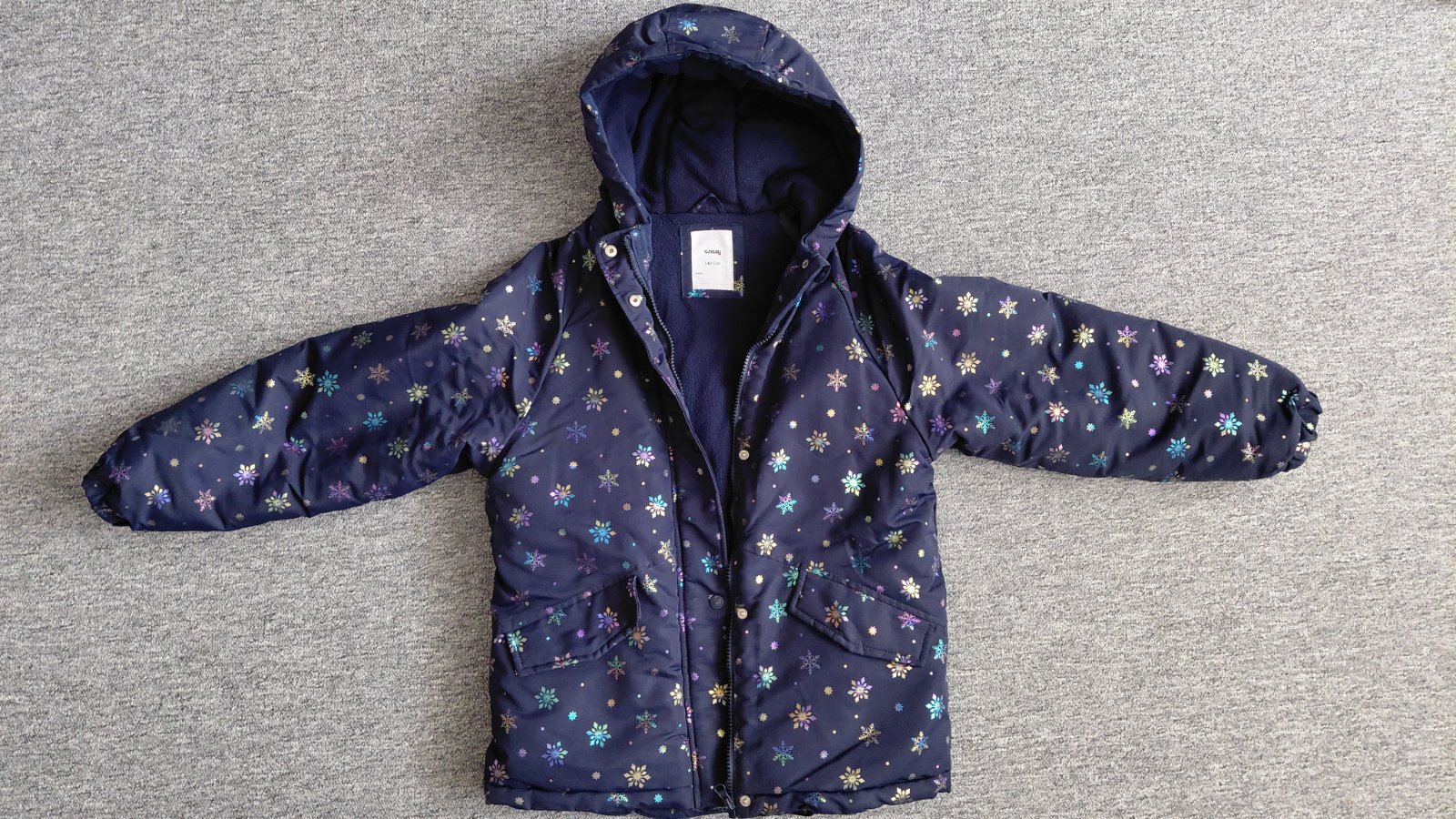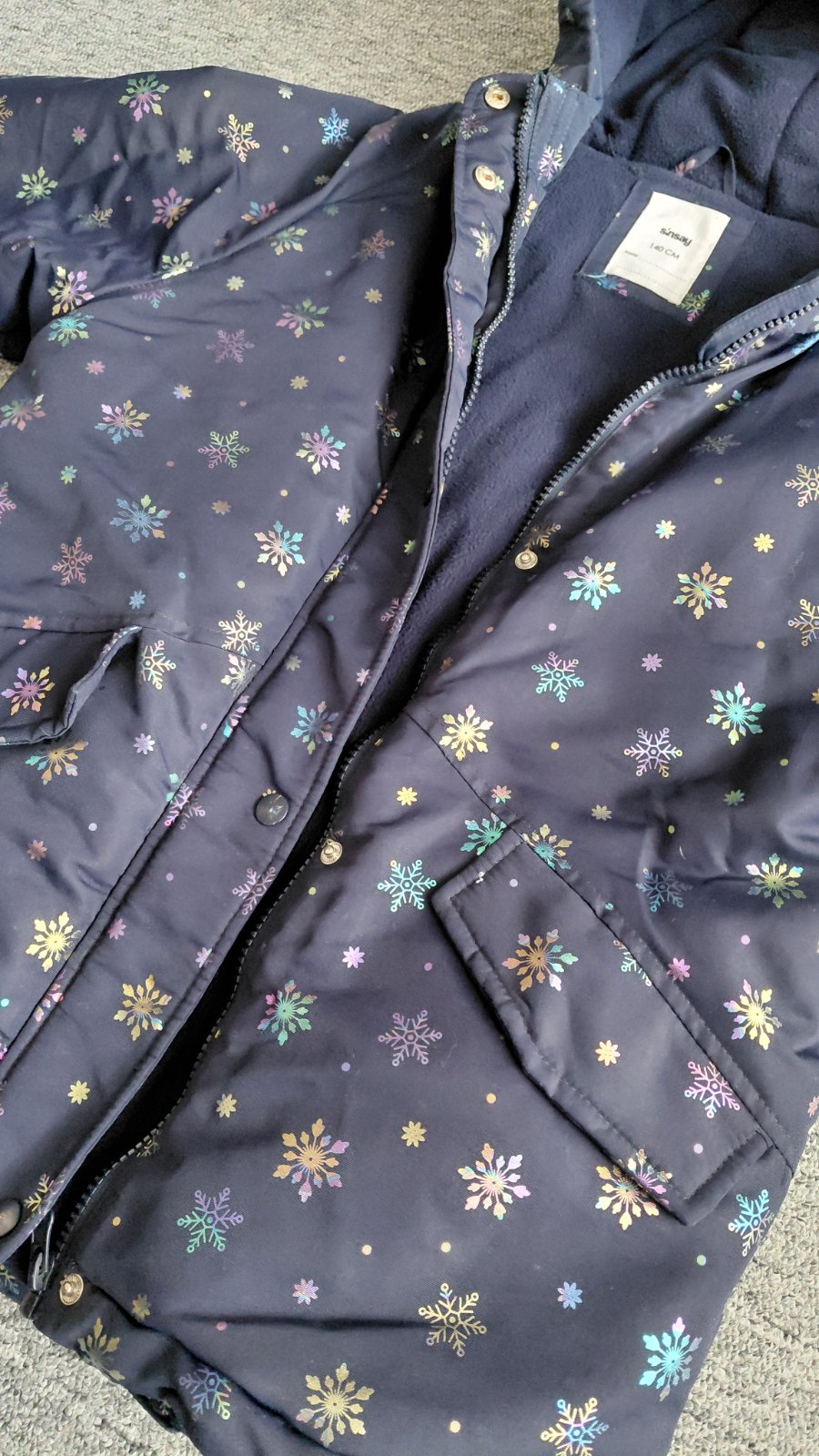 Predam novu zateplenu bundu s rukavicami, tmavomodra s vlockami, v.140. Vhodna na jesen aj zimu. 15e